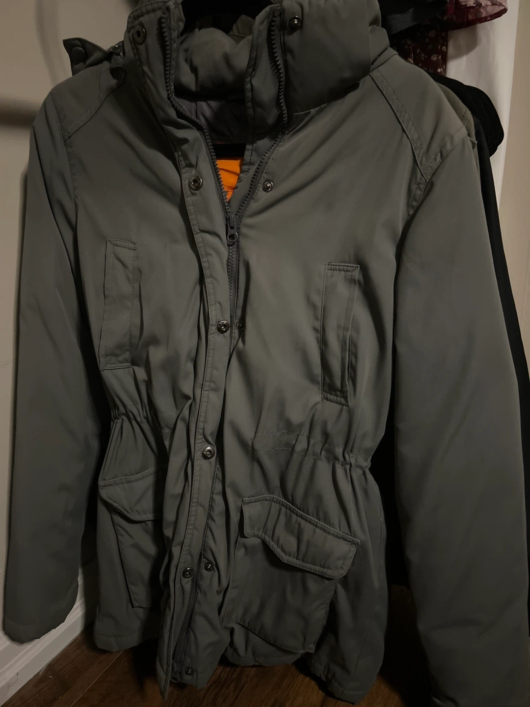Selling a Joe Fresh winter coat in size medium. It's a grey colour and is down filled to keep you warm during the colder months. The coat is made of 60% down and 40% waterfowl feathers. It also has a 20% cotton lining and 100% polyester.
