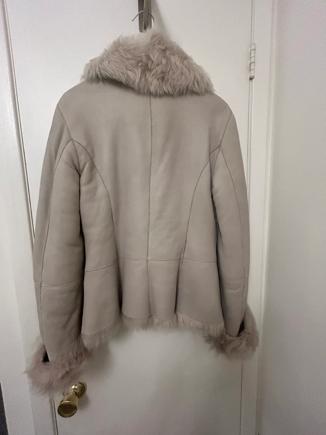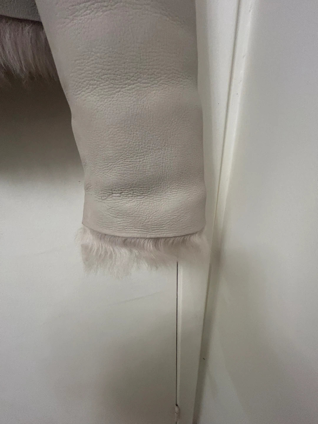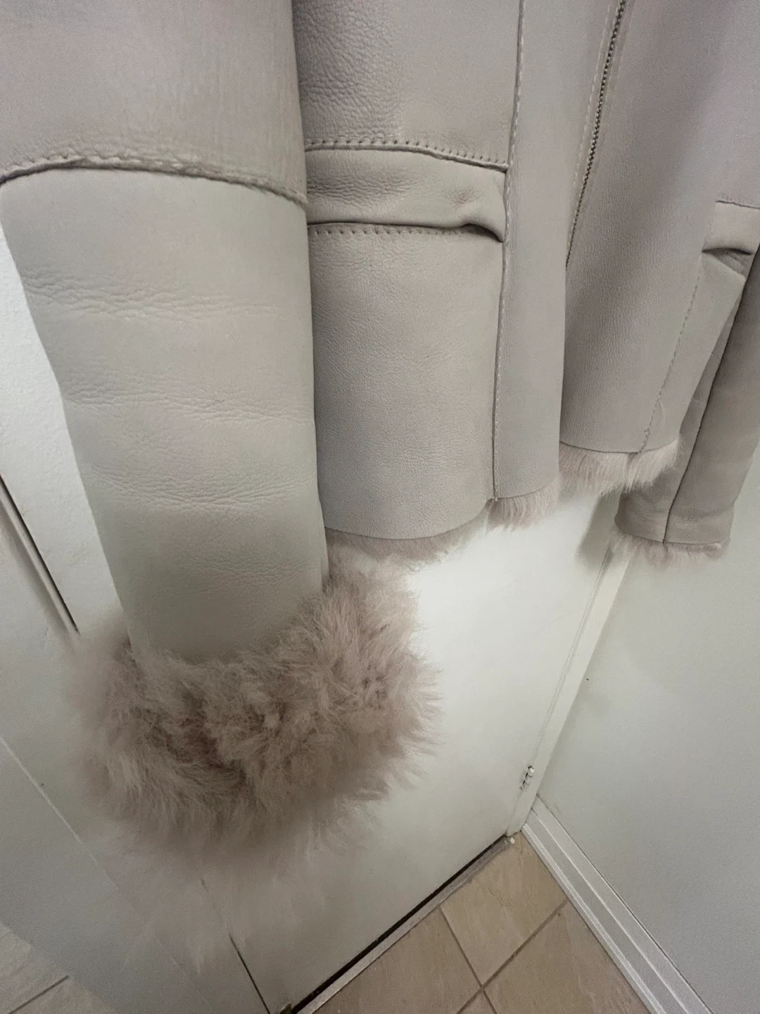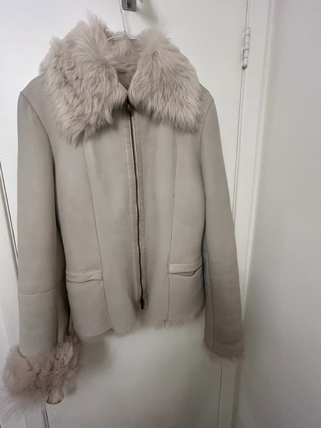 Here's a stylish jacket from Yomanis! It features a soft fur trim and a classic design. Perfect for staying warm and fashionable during the cooler months. Genuine leather.