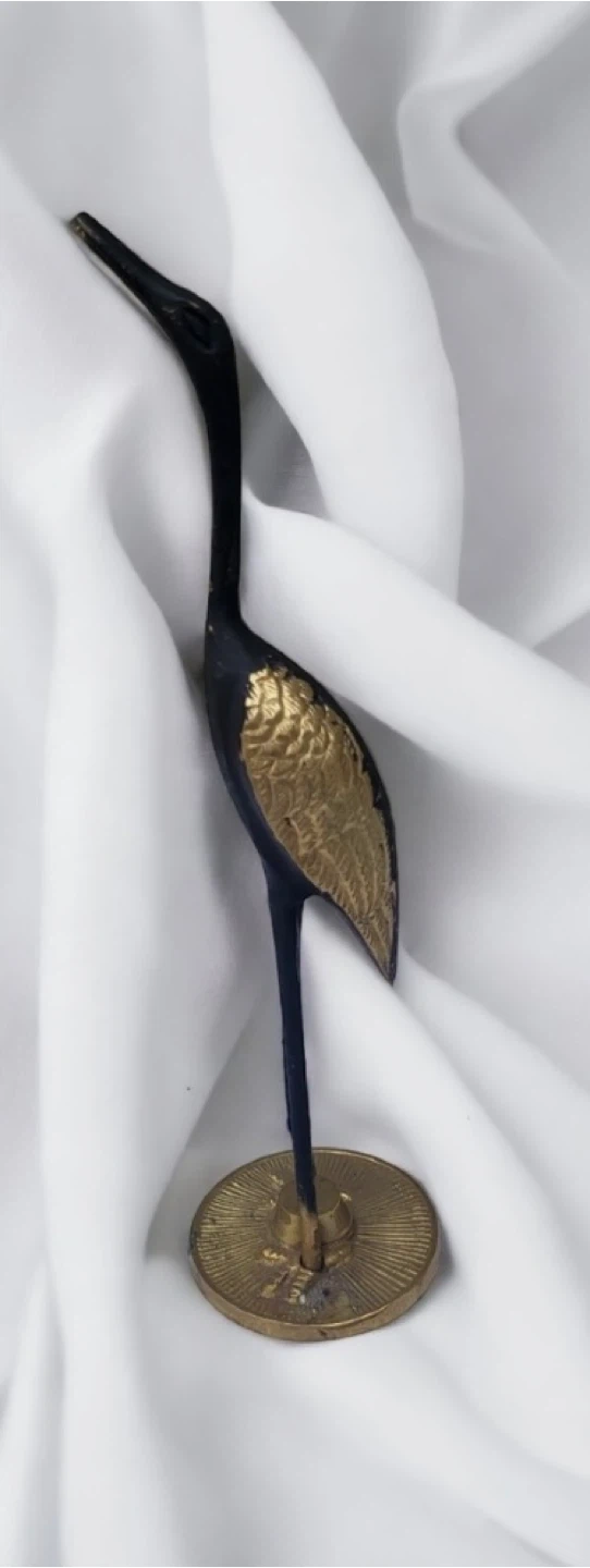 Here's a charming pair of 1960 ’s vintage brass crane figurines! They have a lovely black and gold finish and would make a great addition to any decor