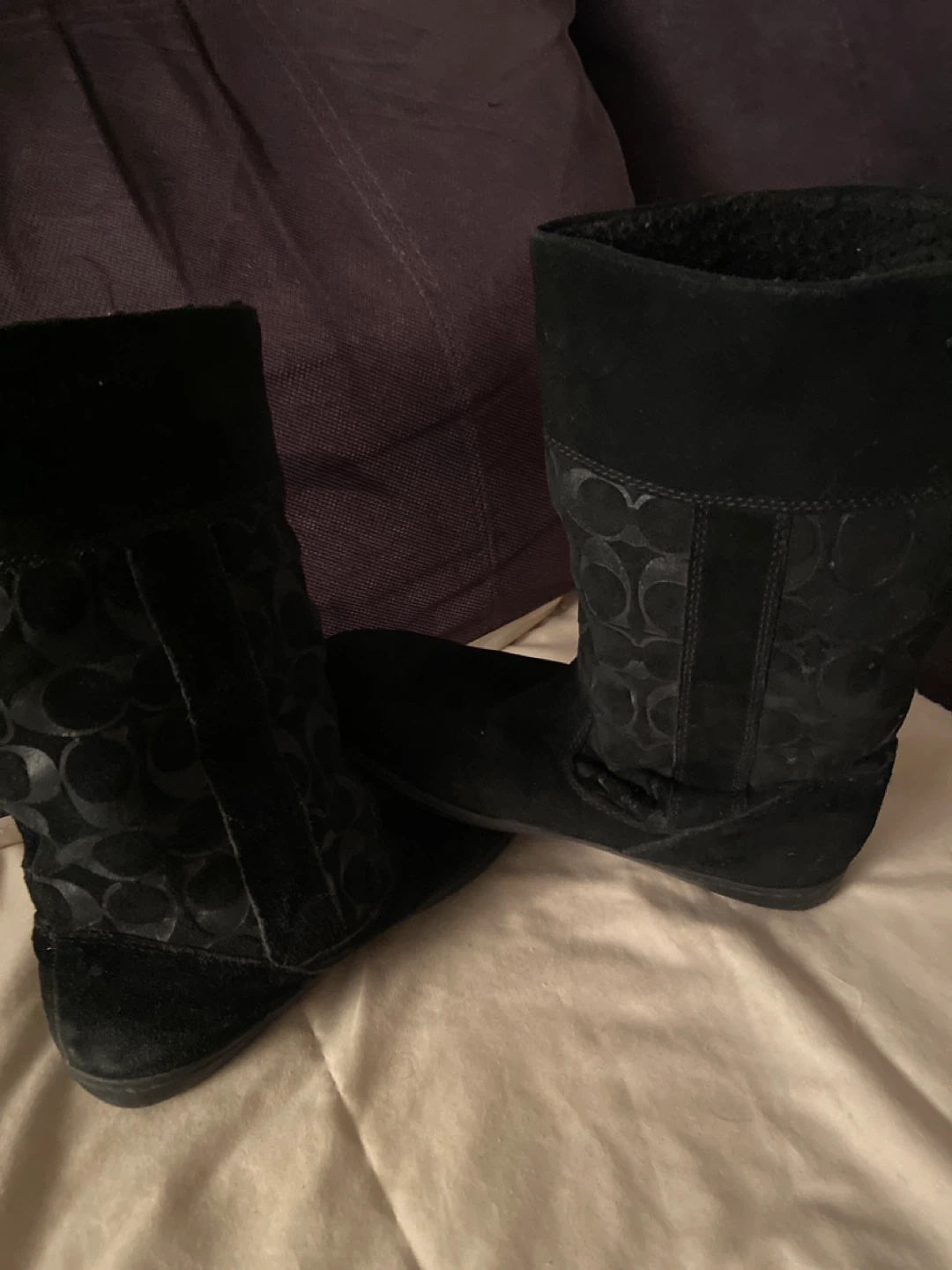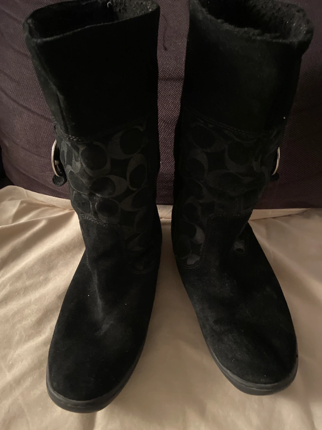 Buy & SellCoach Black Suede Boots size 8Coach Black Suede Boots size 8$80Selling a pair of black suede Coach boots! They have a stylish design and are in good condition. Perfect for the colder weather!ConditionLike newSize8BrandCoachWHERE TO MEETCheck LocationView MapSELLERverifiedSanamFlemingdon Park1000+136 reviews0 chats·0 favorites·11 views