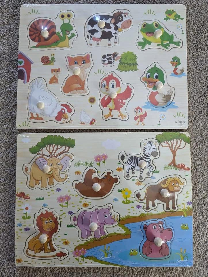 Boost your child's learning with these fun and colorful Montessori wooden puzzles! perfect for developing hand-eye coordination, problem-solving, and fine motor skills. Great gift for early learning!