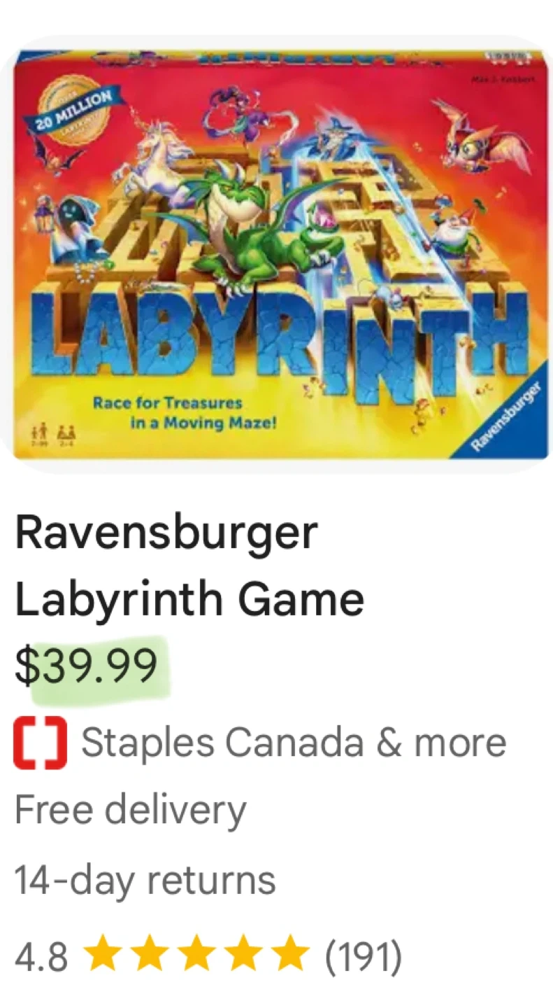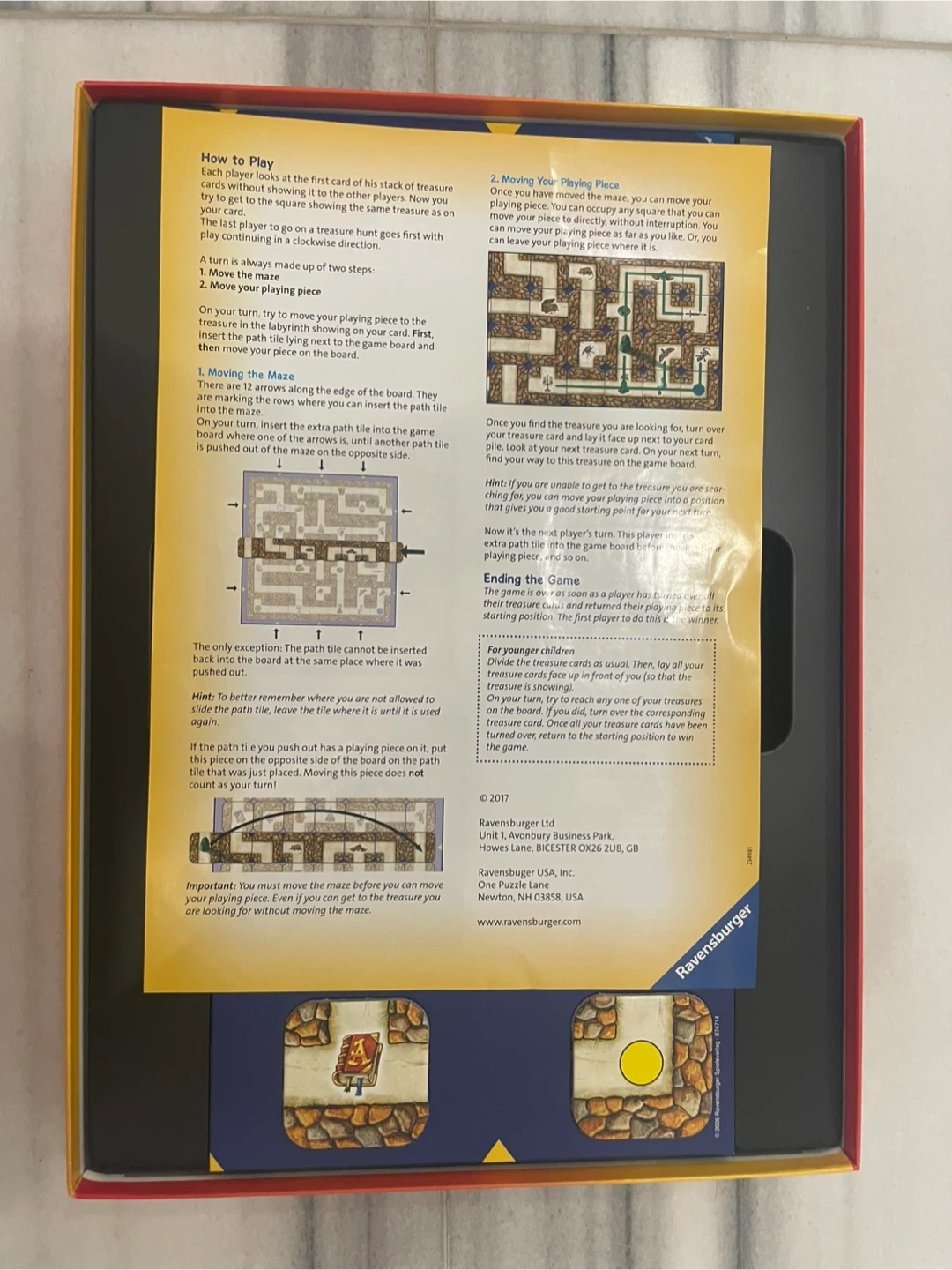Selling a Ravensburger Labyrinth board game! It's a race for treasures in a moving maze! The box includes the instructions on how to play. Great for family fun!