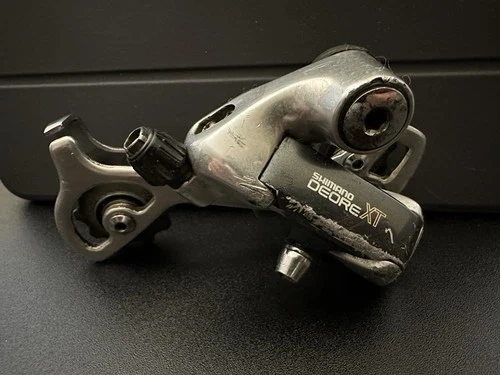 The Shimano Deore XT Rear Derailleur RD-M735 is a vintage cycling component made in Japan. Known for its durability and precision, this rear derailleur is designed for optimal performance on bicycles. With the iconic Shimano XT model, this rear derailleur is a sought-after piece for cycling enthusiasts looking to upgrade their bike's performance. Made with high-quality materials and craftsmanship, this product embodies the legacy of Shimano's renowned reputation in the cycling industry. Comes as you see in the pictures. Expect wear and scratches from use but fully functional.