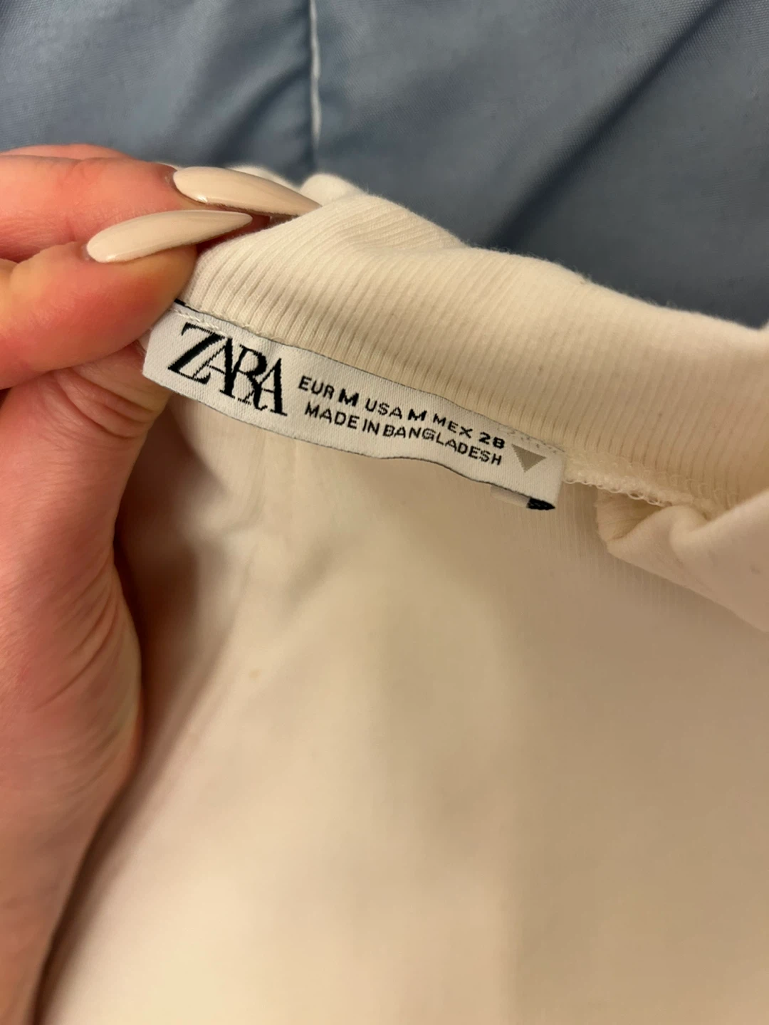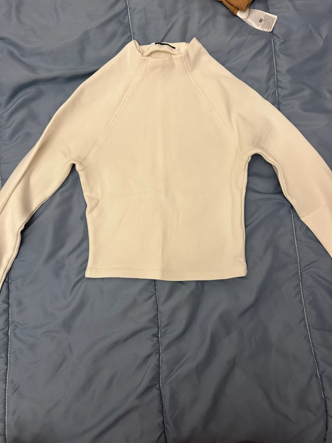Selling a Zara cream-coloured long sleeve top in size medium. It's in great condition and ready for a new home! The material is soft and comfy, perfect for layering or wearing on its own. It's a versatile piece that can be dressed up or down, making it a great addition to any wardrobe
