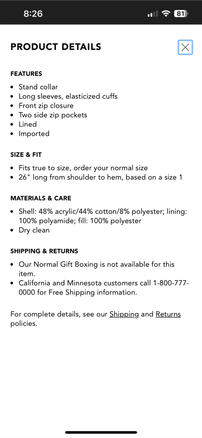 New with tags! French Size 0= US 2-4, fits xsmall-small Very warm and real leather on the linings Msrp $645 Open to reasonable offers