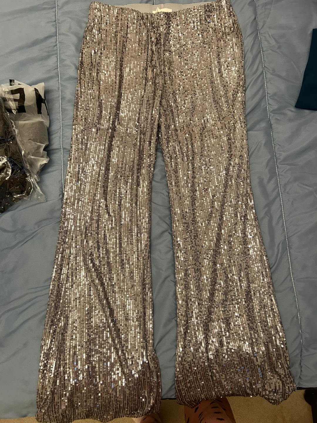 Sparkly H&M pants in size medium! These pants are perfect for a night out or any special occasion. They're in great condition and ready for a new home