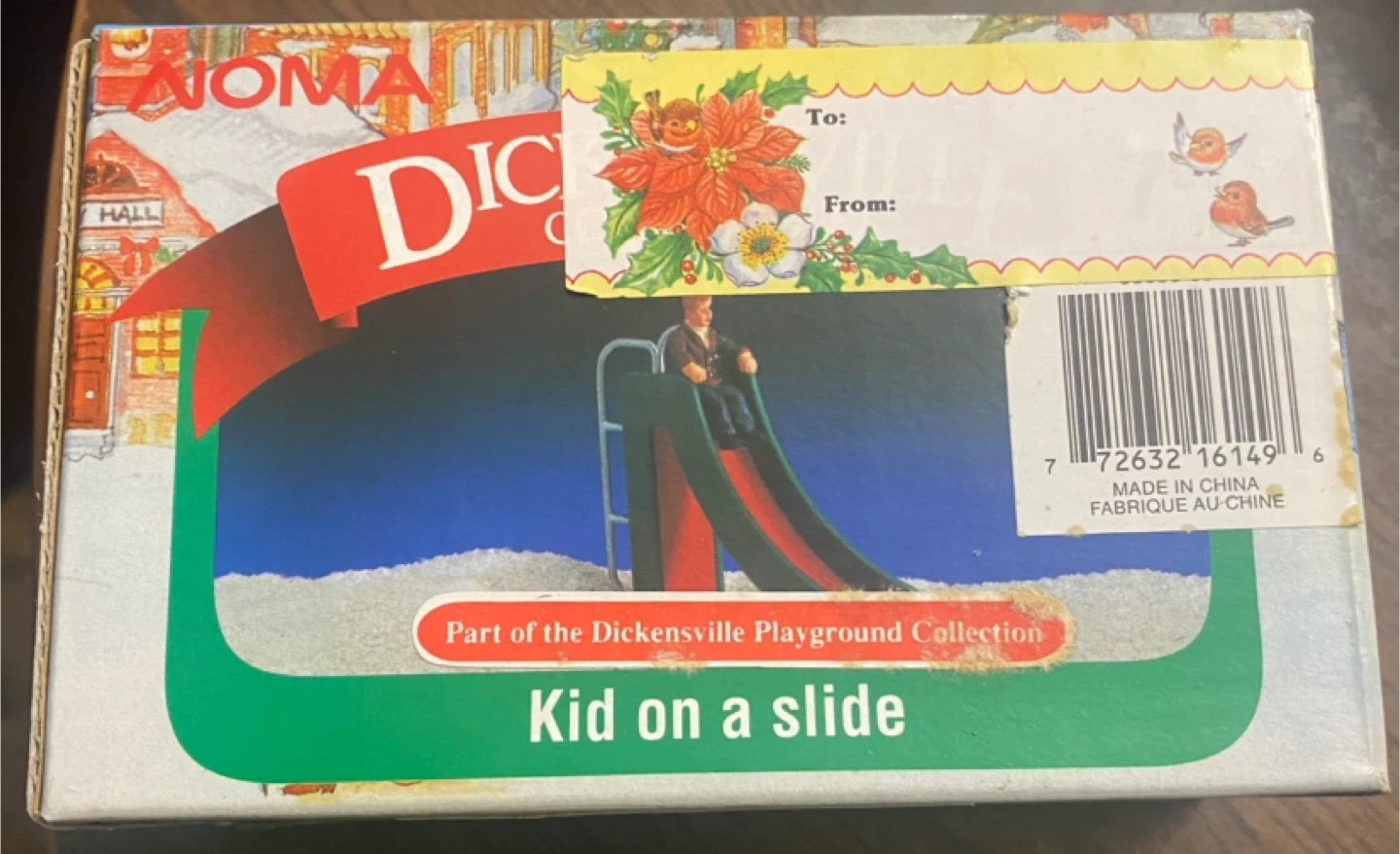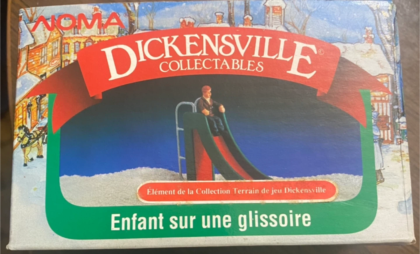 Selling a NOMA Dickensville Collectables figurine, "Kid on a slide" from the Dickensville Playground Collection! This hand painted porcelain detailed accessories will become a part of your Christmas traditions for years to come. Box included