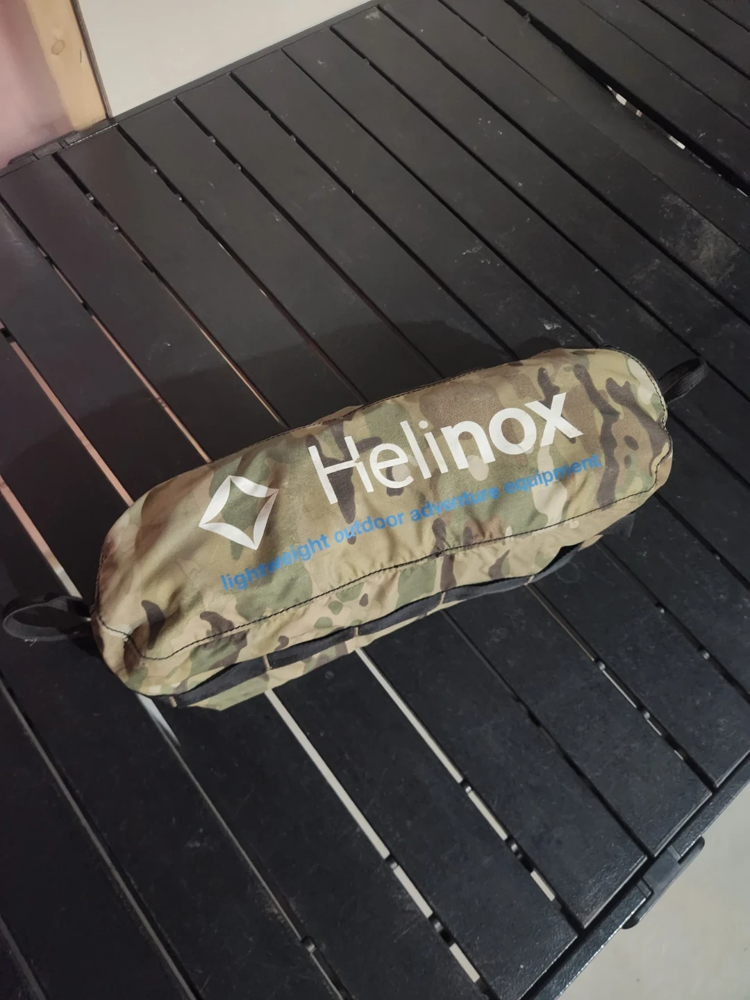 Selling a Helinox Chair Zero High in a cool camo pattern! This chair is super lightweight and portable, perfect for camping, hiking, or just chilling in the backyard. It comes with its original carrying bag, making it easy to pack and go. Get ready to relax in style!