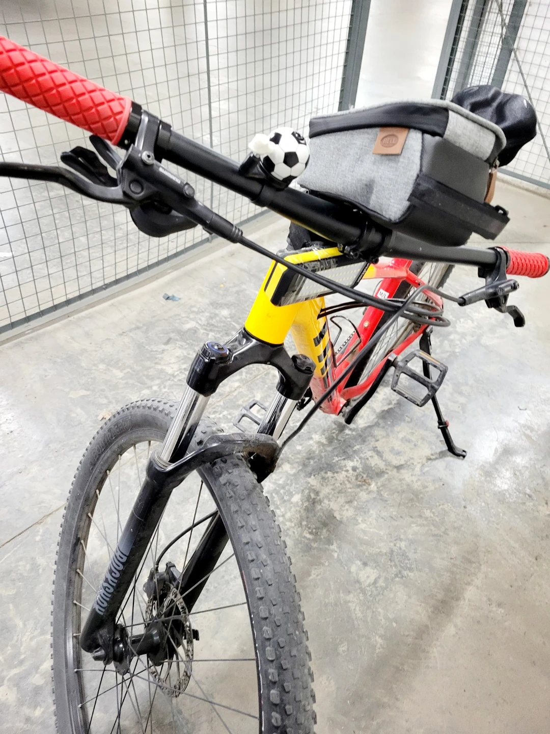 Selling a Trek Marlin mountain bike in a vibrant red and yellow colour. It's in good used condition and ready for some off-road adventures. This bike is perfect for hitting the trails or just cruising around town. Need a road bike for commuting. This has been fun to ride. It navigates your front wheel to assist turning easily and smooth. Very fast reliable bike. 🥲❤️💛