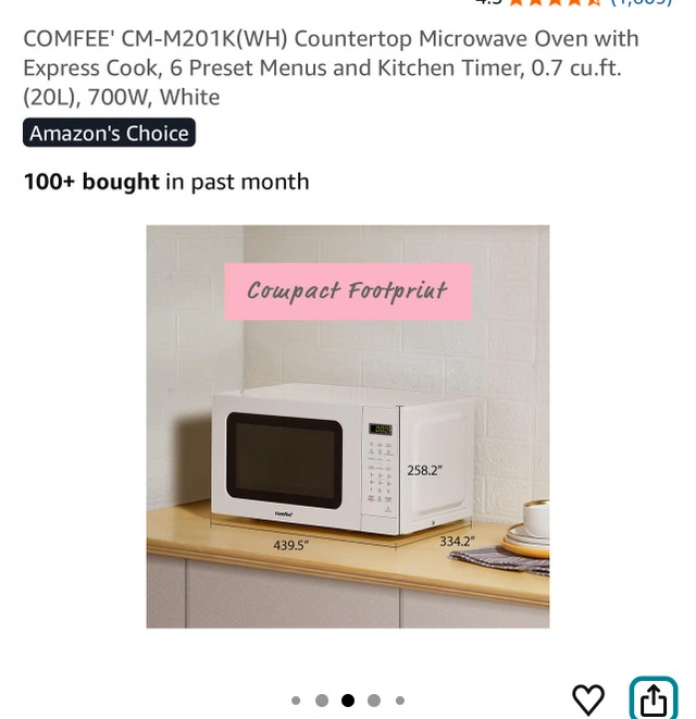 26COMFEE' CM-M201K(WH) Countertop Microwave Oven with Express Cook, 6 Preset Menus and Kitchen Timer, 0.7 cu.ft. (20L), 700W, White For Sale By: Owner