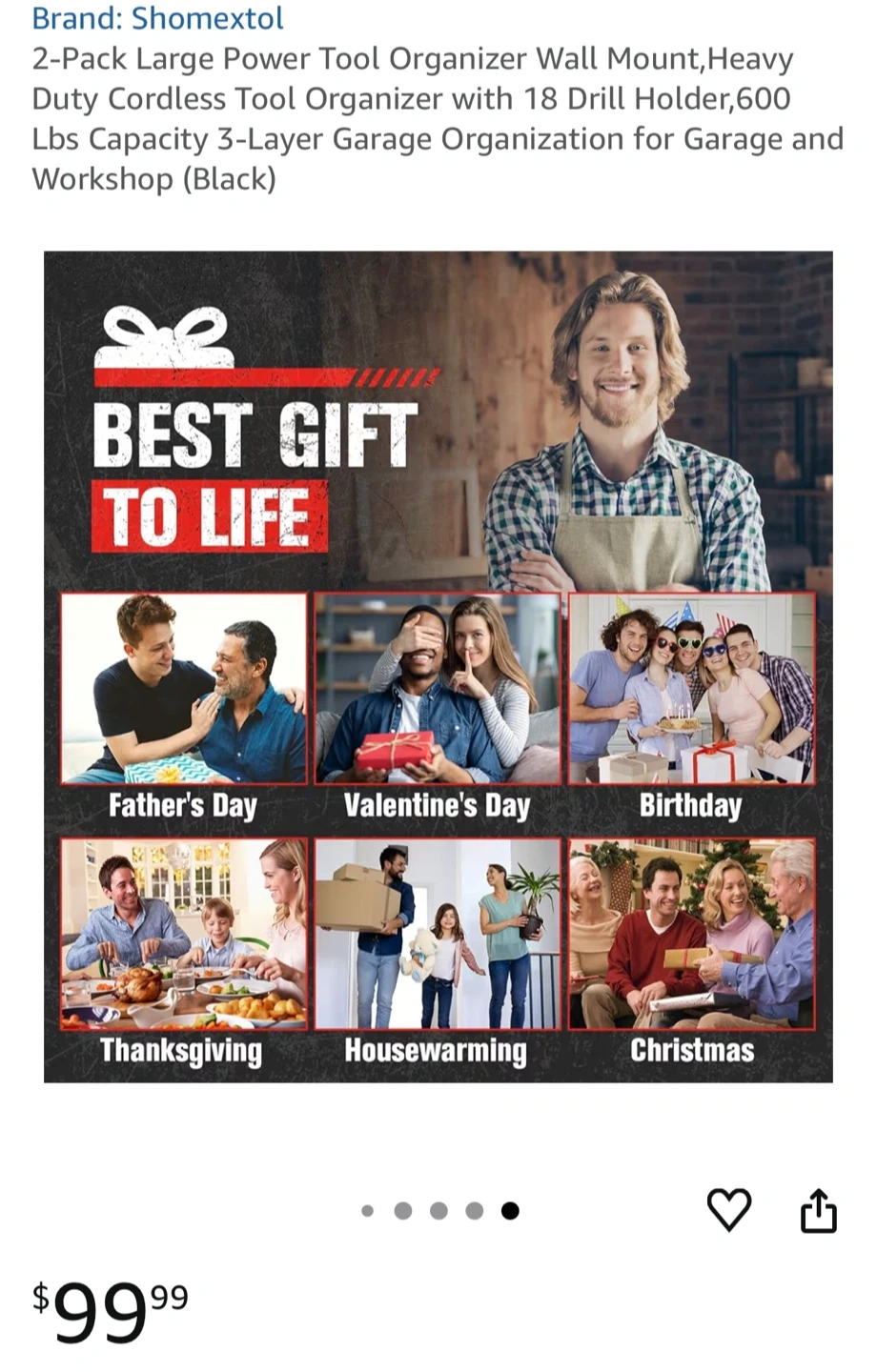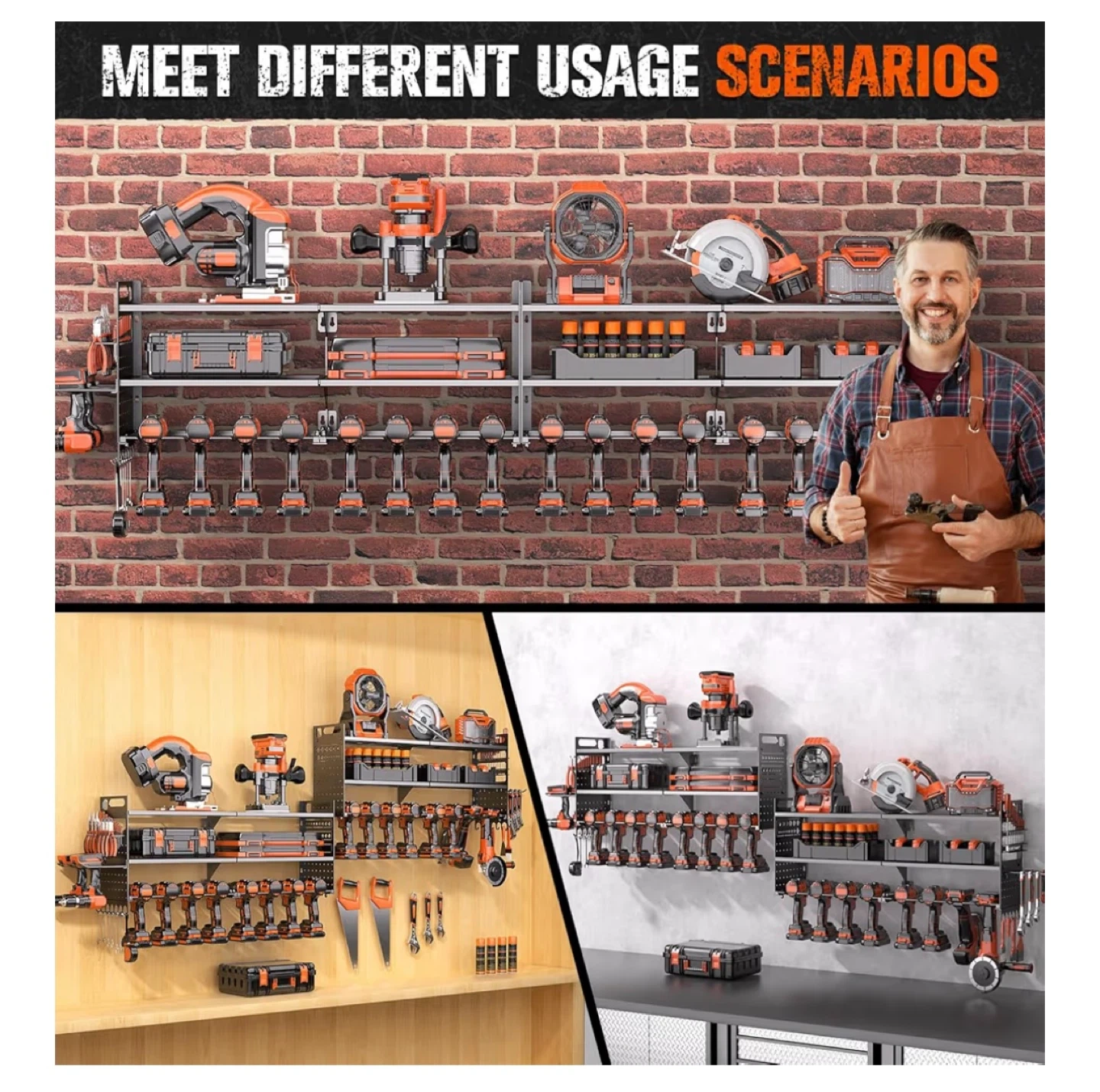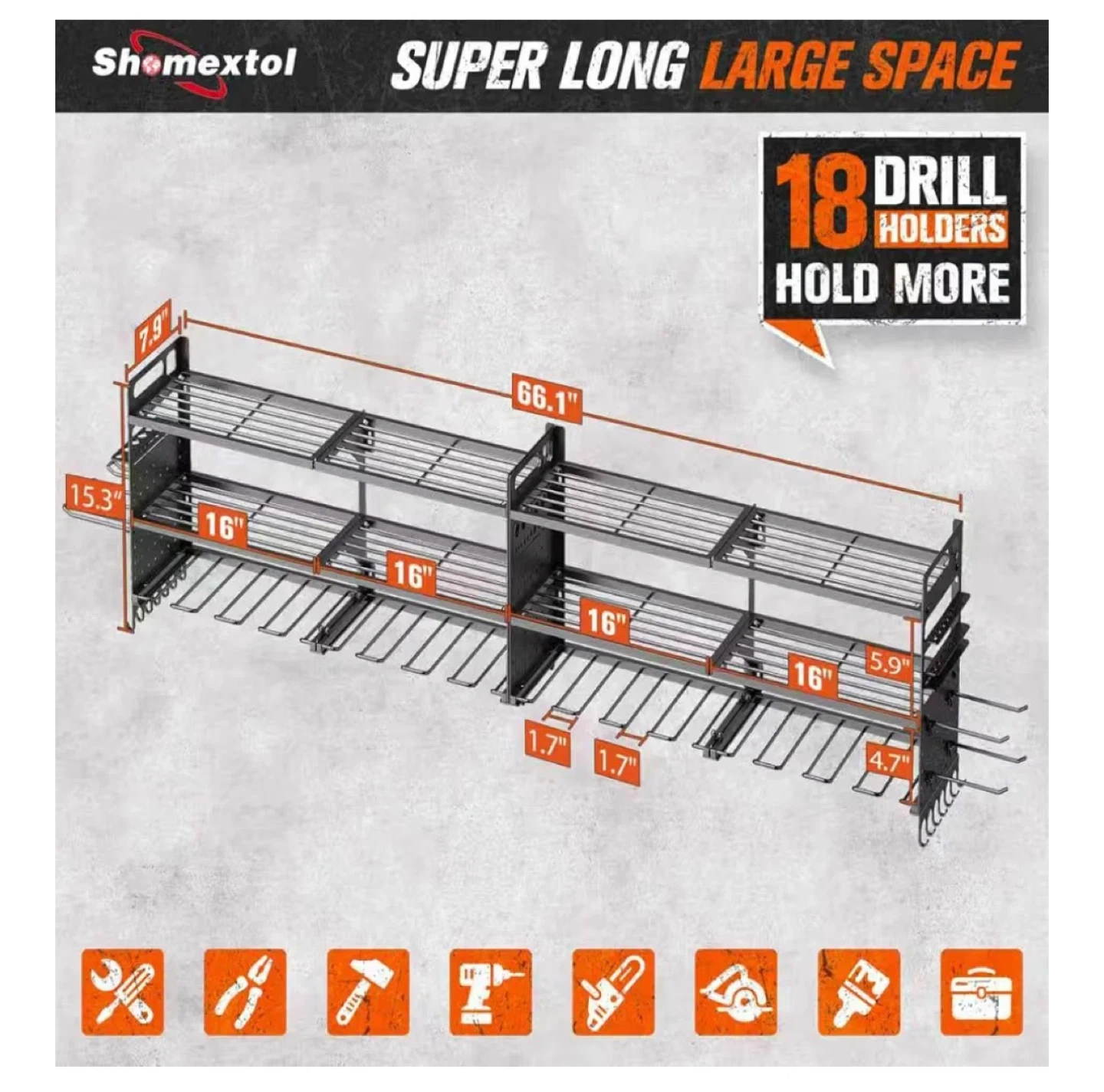 I'm selling a brand new Shomextol Power Tool Organizer! It's still in its original packaging and has never been used. It's a 2-Pack Large Power Tool Organizer Wall Mount, Heavy Duty Cordless Tool Organizer with 18 Drill Holders, and 600 lbs Capacity. Perfect for a 3-Layer Garage Organization for Garage and Workshop (Black).