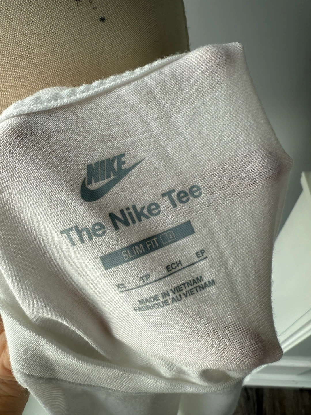 1000+Selling a Nike "The Nike Tee" in a slim fit! It's a size XS and is white. Great basic to have in your closet!