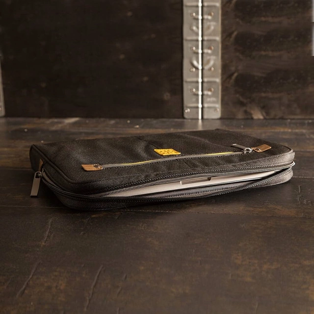 This is a Golla ROAD G1582 laptop sleeve in very good condition, perfect for safely carrying your device. It features a durable, stylish design with a padded interior to protect your laptop from bumps and scratches. The exterior has a sleek, professional look with a zippered closure for secure storage. Specifications: