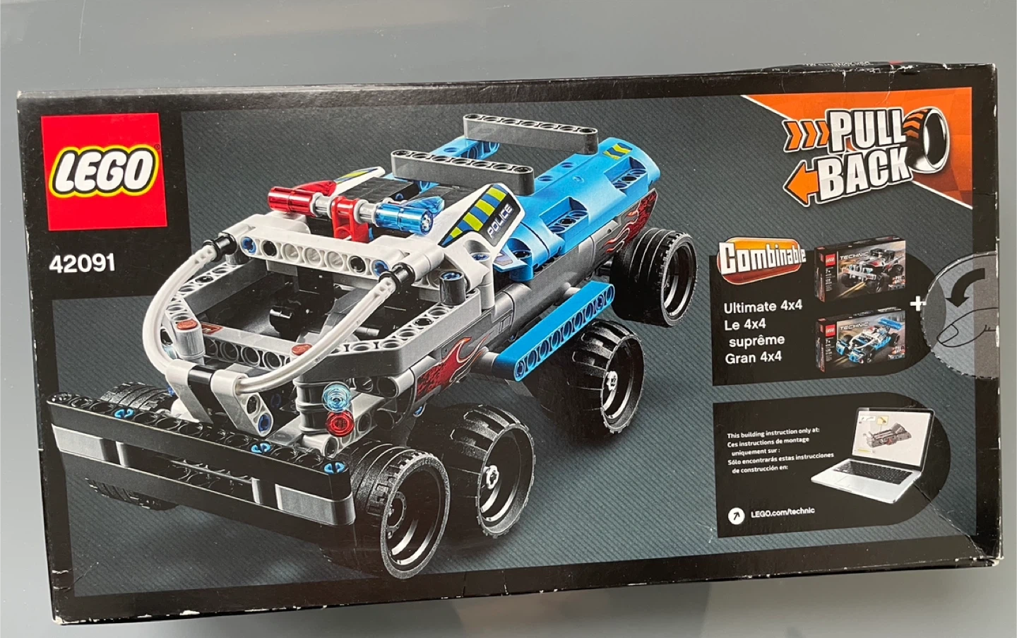 103NEW, in original sealed box. LEGO Technic 42091 Police Pursuit set! It's a cool pull-back car that's part of the Ultimate 4x4 combinable series. I