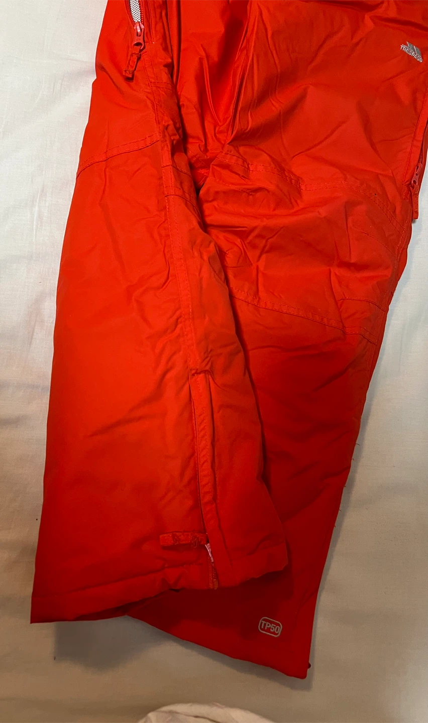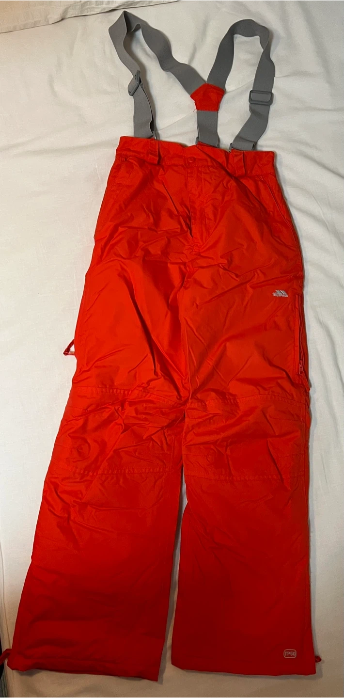 These orange snow pants from Trespass are ready for the slopes! They feature adjustable suspenders and a zippered pocket on the side. Perfect for keeping warm and dry during winter activities
