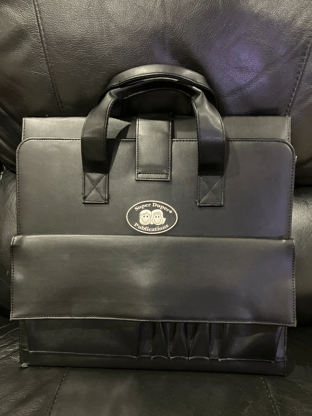 Selling a Super Duper Publications Carry-All Organizer! It's great for keeping your teaching materials neat and tidy. It features multiple pockets and a whiteboard/mirror insert.
