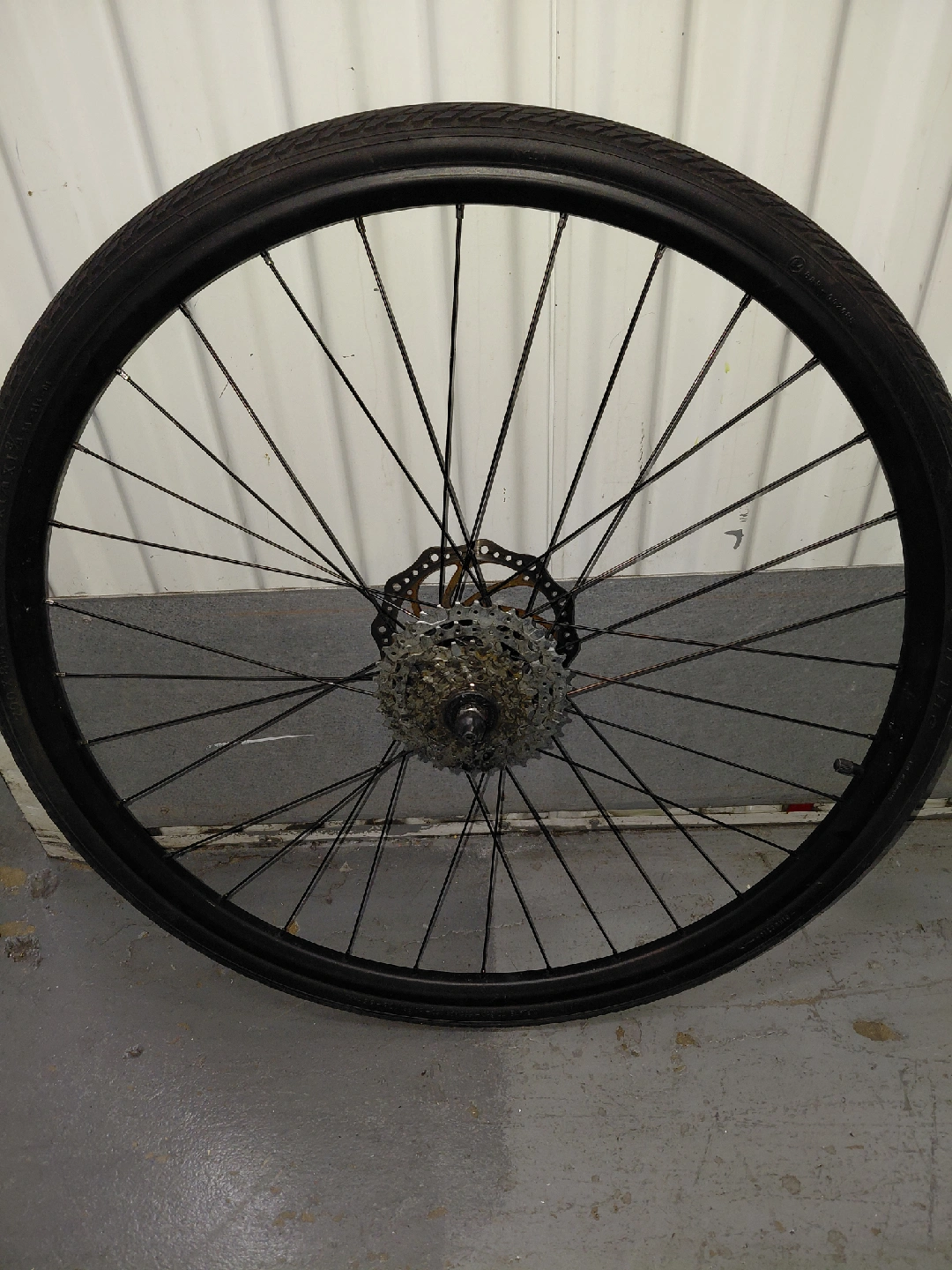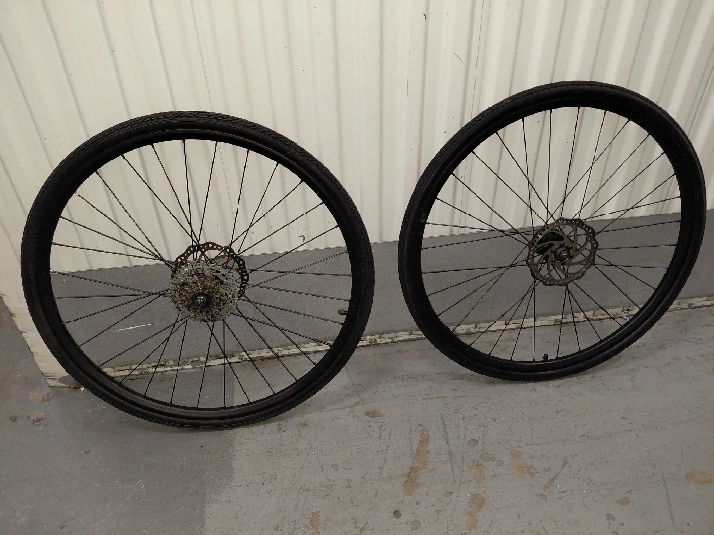 Selling a used bike wheel set. They're black and in good condition. Perfect for your next cycling adventure!