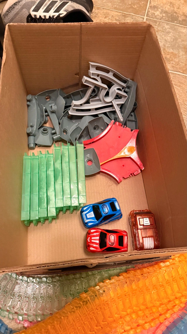 For sale is an enormous collection of flexible, multi-color race car tracks. This is an official Magic Tracks brand set, featuring "serpentine technology" that allows the tracks to bend, flex, and curve in almost any direction imaginable!