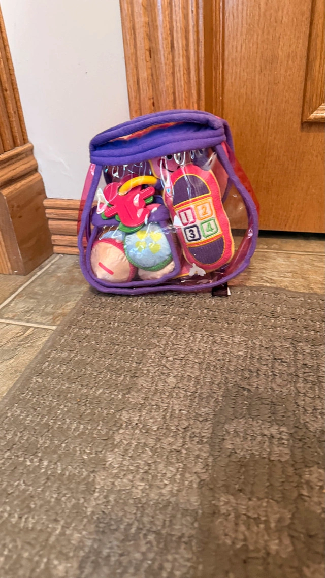 The Melissa & Doug Pretty Purse Fill and Spill Soft Play Set is a soft, plush toy designed for babies and toddlers. It is an activity set focused on sensory exploration and fine motor skills.