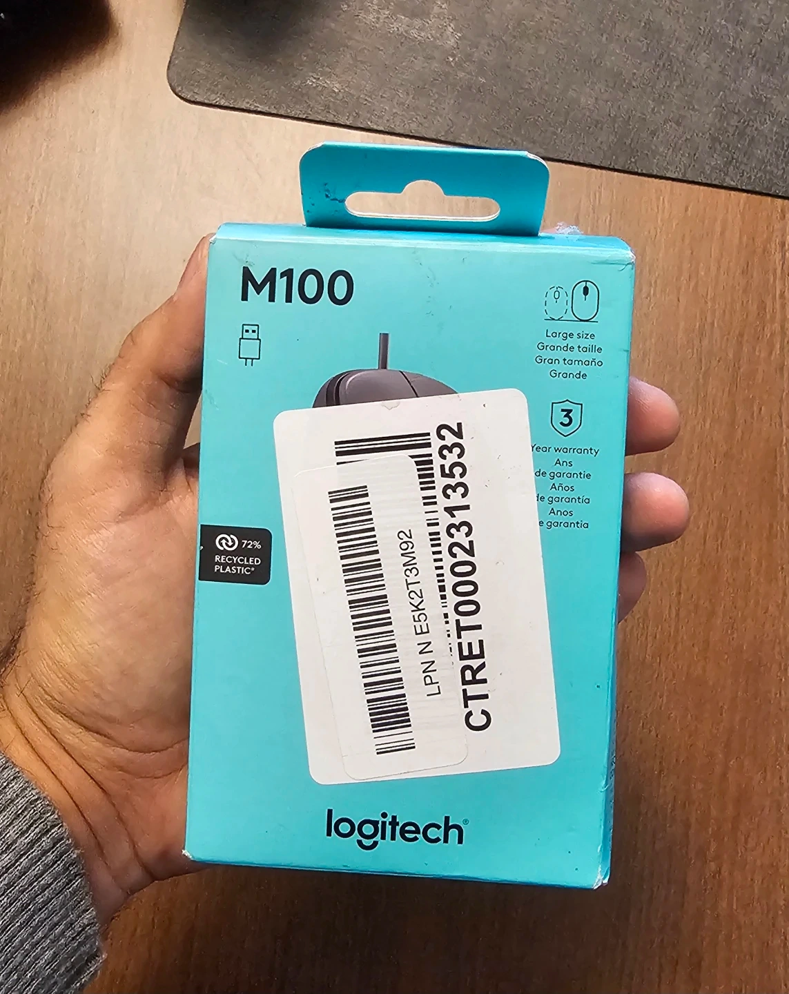 Selling a Logitech M100 wired mouse in Brand new condition! It's a large size and comes . The mouse Comes with the original box