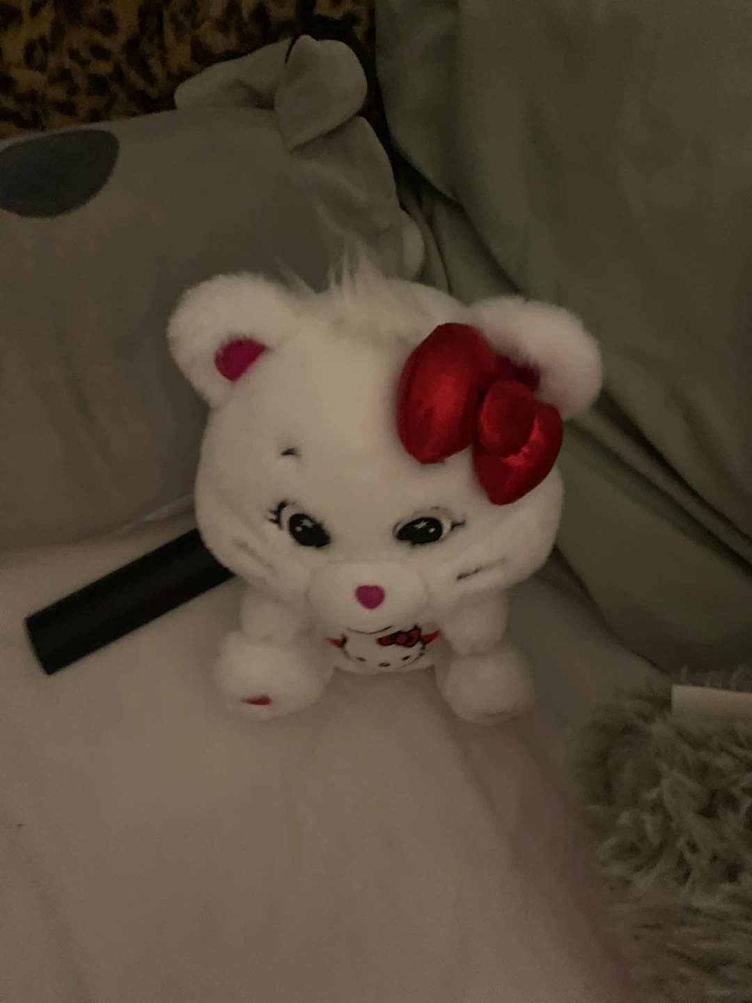 Selling a super cute Hello Kitty Care Bears plush! It's in great condition and ready for a new home. It features Hello Kitty in a Care Bears design with a red bow