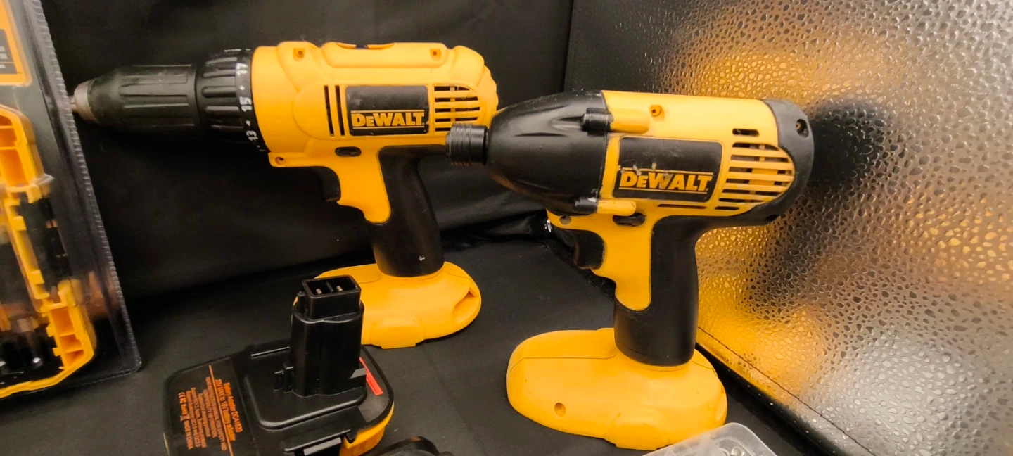 Selling a DeWalt drill and impact driver combo kit. Includes the drill, impact driver, battery, charger, and a selection of hand tools. Great for various projects around the house!