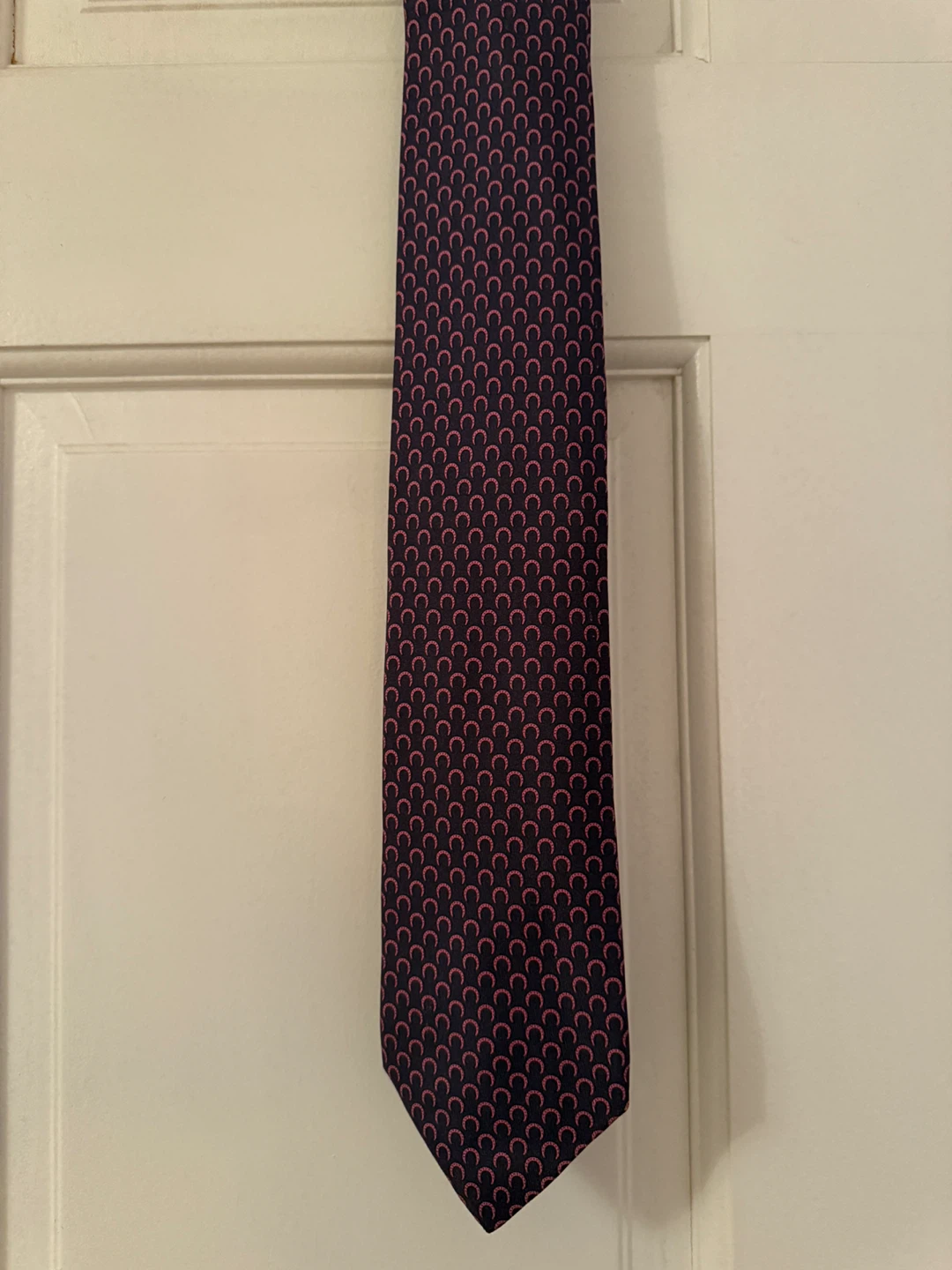 This is a stylish Hermès Paris tie made in France. It is made of 100% silk with a unique pattern. It's in great condition and ready to add a touch of elegance to your wardrobe!