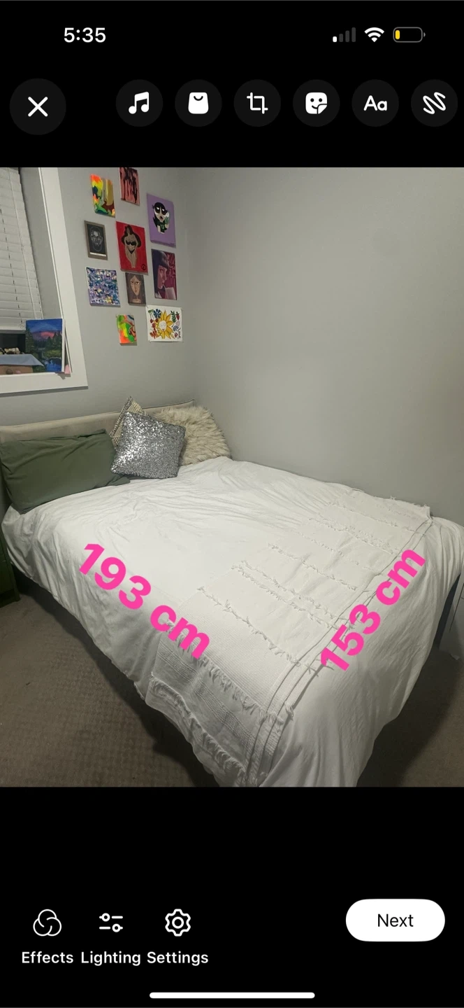 Selling an IKEA Kleppstad bed frame in white/Vissle beige, perfect for a full/double size mattress! The dimensions are approximately 193 cm x 153 cm. It's a stylish and sturdy option for your bedroom.
