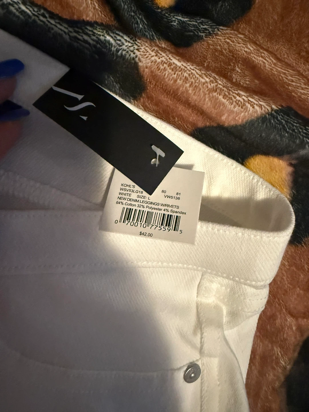 Buy & SellVera Wang Leggings - Size LVera Wang Leggings - Size L$10Selling a pair of white denim leggings in size L! They're made of 64% cotton, 32% polyester, and 4% spandex. Originally bought for $42ConditionNewBrandVera wangWHERE TO MEETCheck LocationView MapSELLERverifiedCassidyCentral650 reviews0 chats·0 favorites·1 views