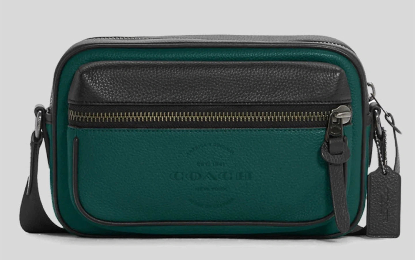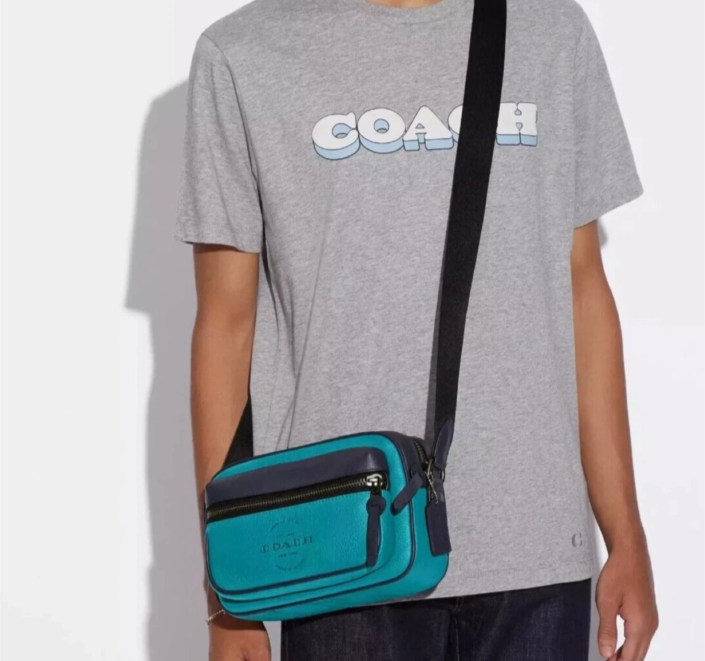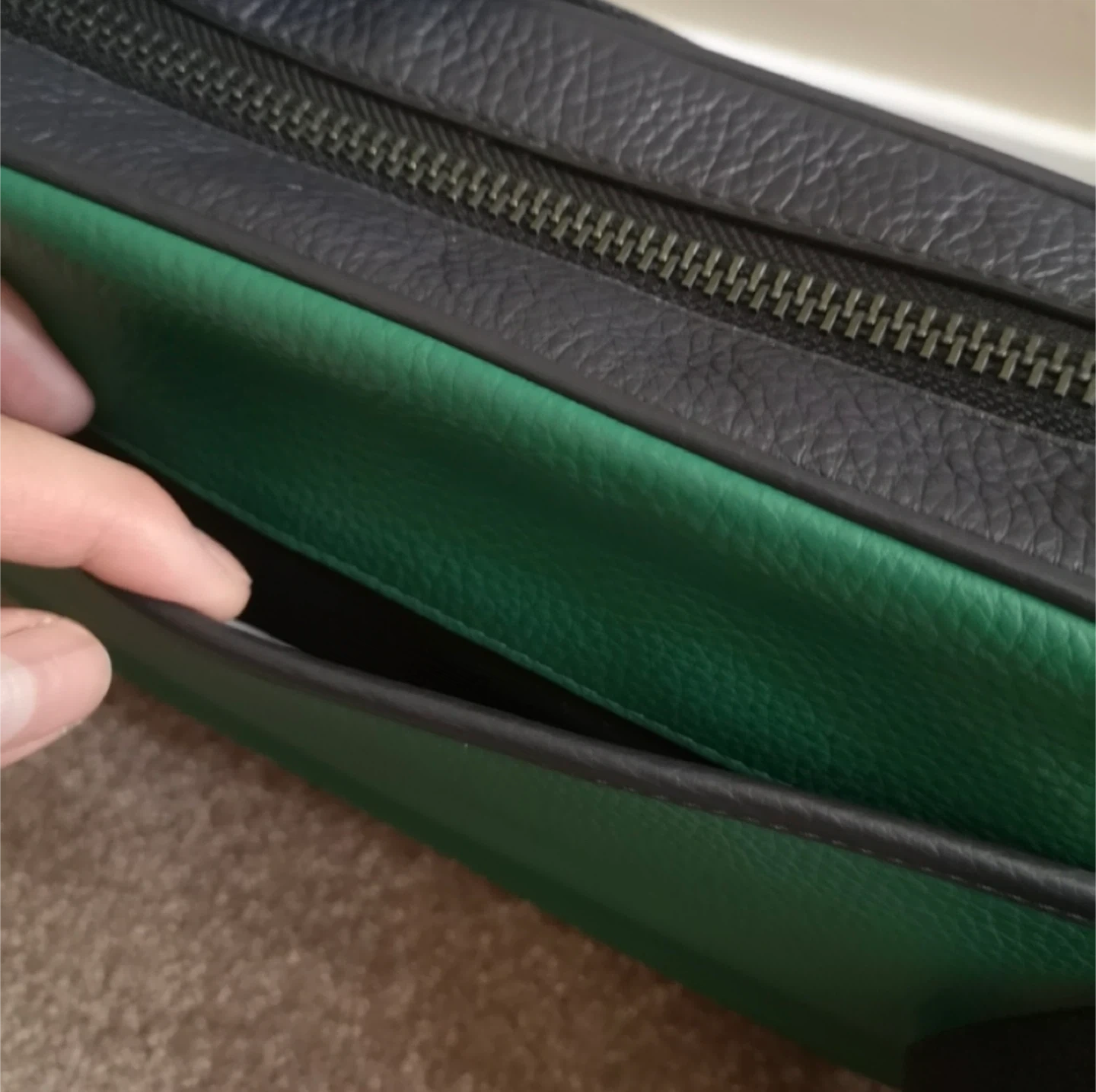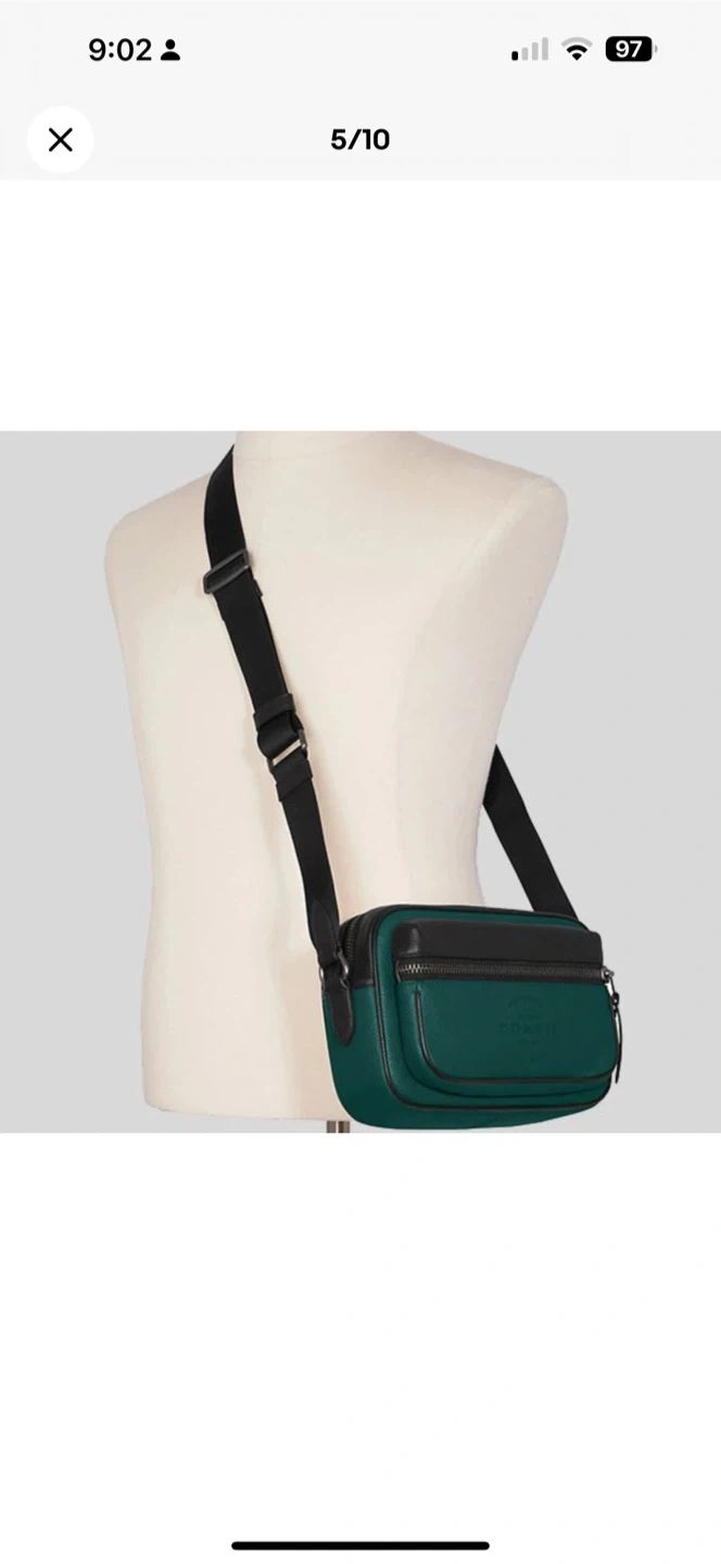 Selling a Coach crossbody bag in a stylish green and grey colour combination! It's made of leather and features a comfortable strap. Perfect for everyday use!