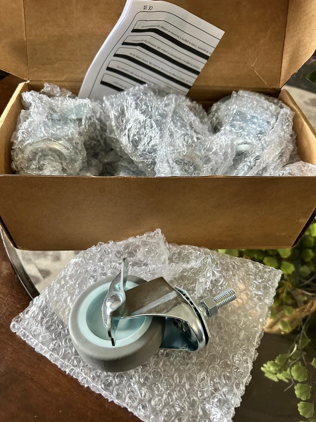 Selling a brand new set of 8 swivel caster wheels. They come in their original box with all the necessary components and instructions. Perfect for adding mobility to furniture or equipment!