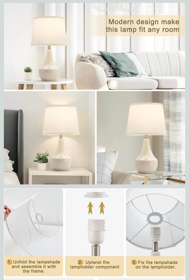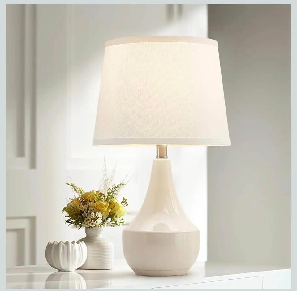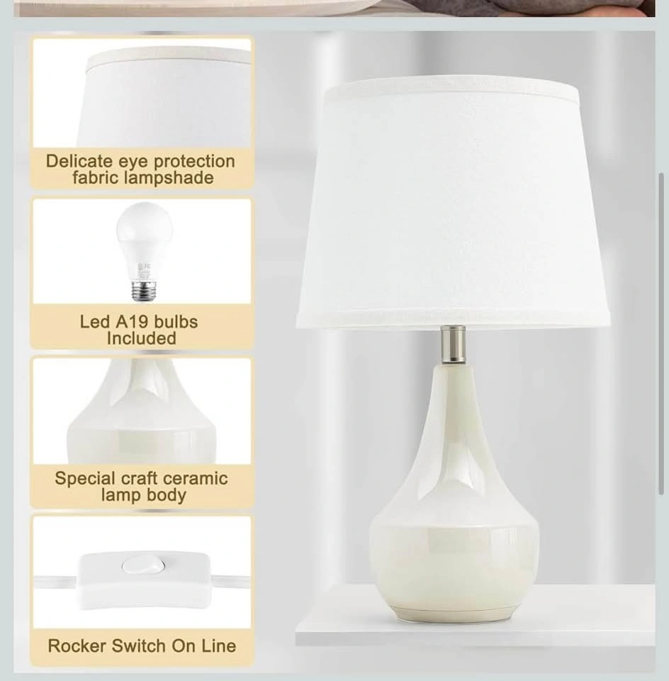 GyroVu Table Lamp Set of 2 Cream Modern Table Lamp, LED Bulbs Included, for Living Room, Bedroom & Office, Ceramic, 18.63", Beside Lamps, Nightstand Lamp, Classic, Rocker Switch