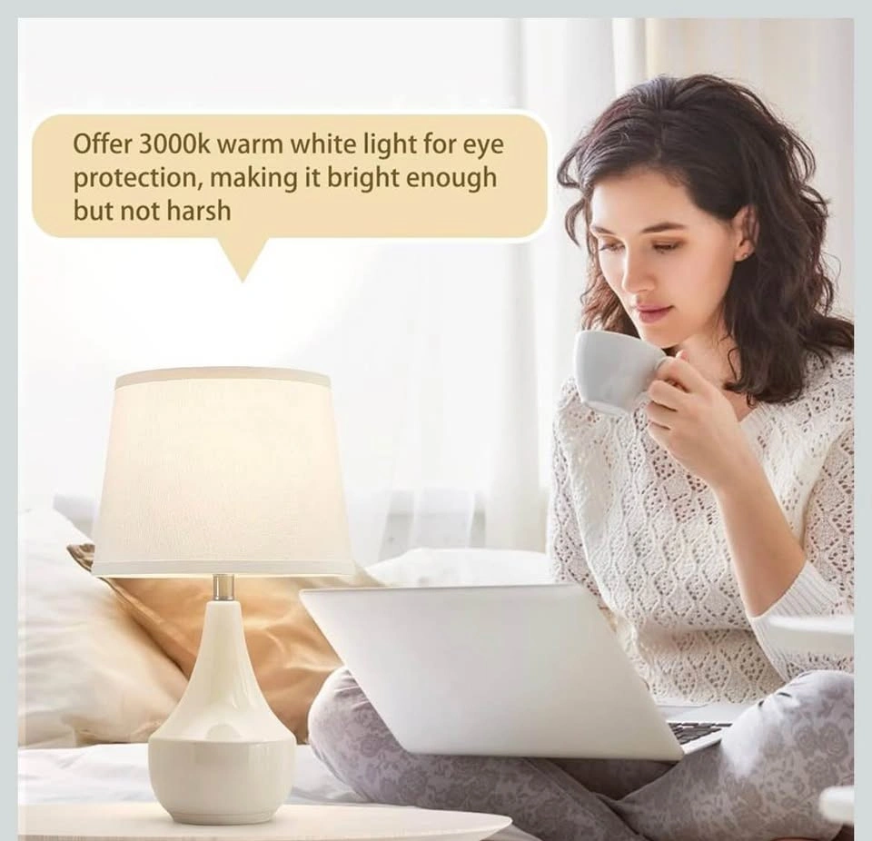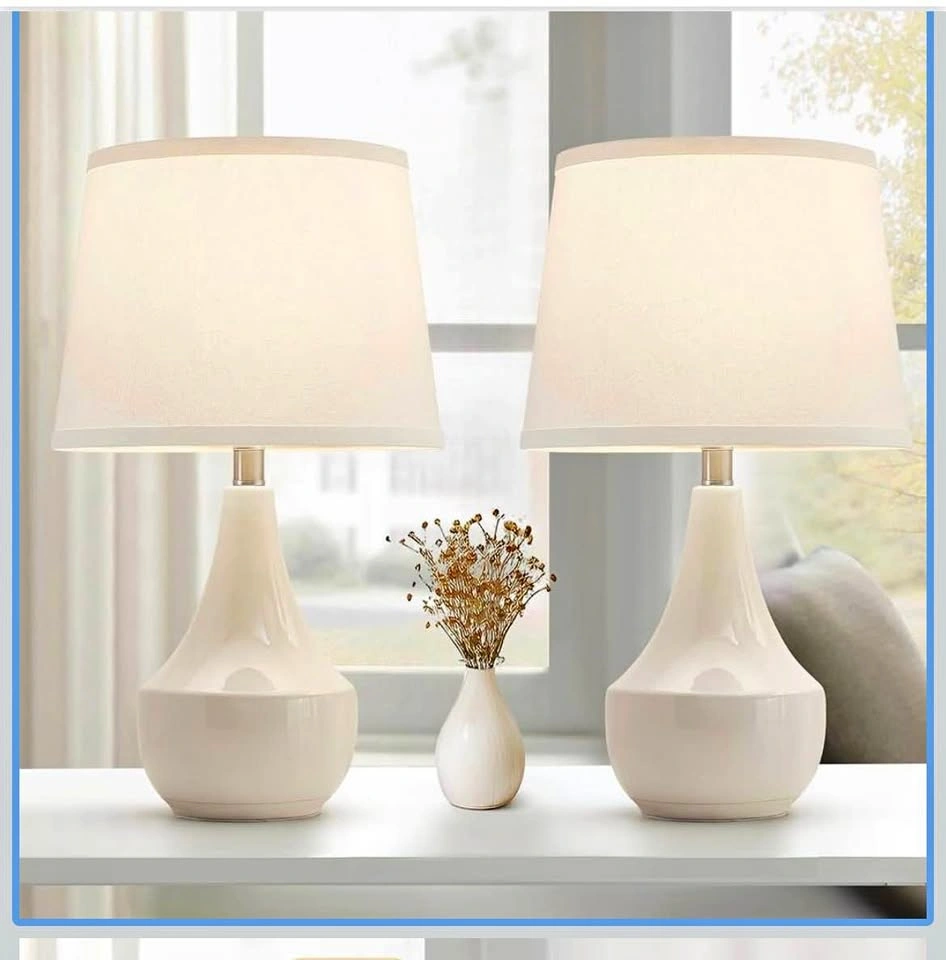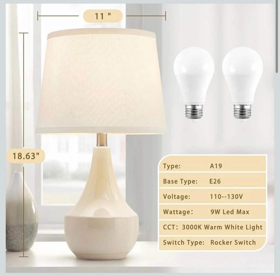 GyroVu Table Lamp Set of 2 Cream Modern Table Lamp, LED Bulbs Included, for Living Room, Bedroom & Office, Ceramic, 18.63", Beside Lamps, Nightstand Lamp, Classic, Rocker Switch