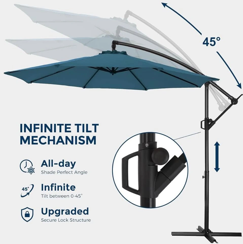 • 10‑foot offset design — wide shade while keeping the pole out of the way