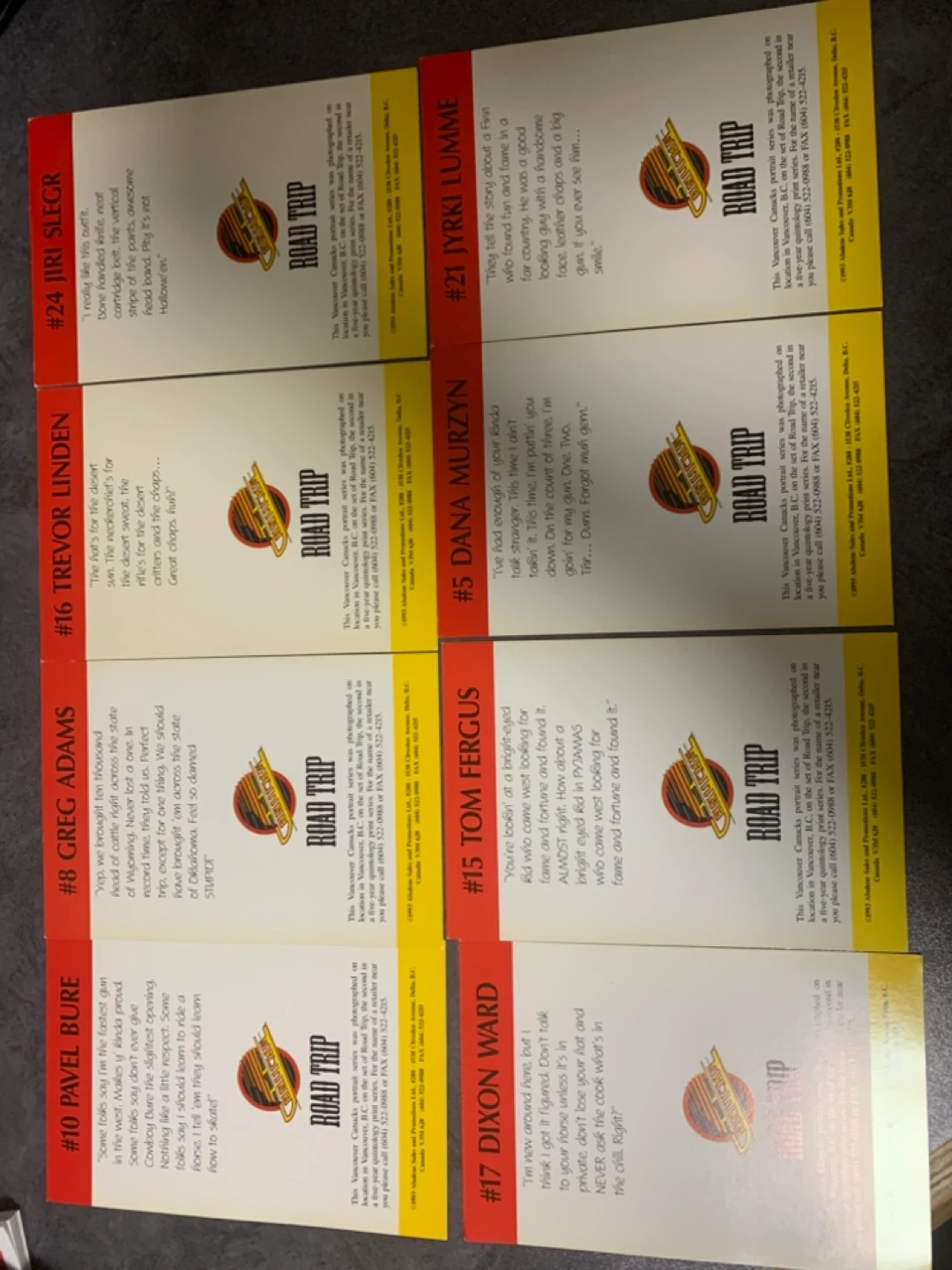 Selling a set of Vancouver Canucks Road Trip cards. Each card features a player and a short quote. Great for any Canucks fan or collector! . 1994 Stanley cup finalist including Pavel Bure and TrevorLinden