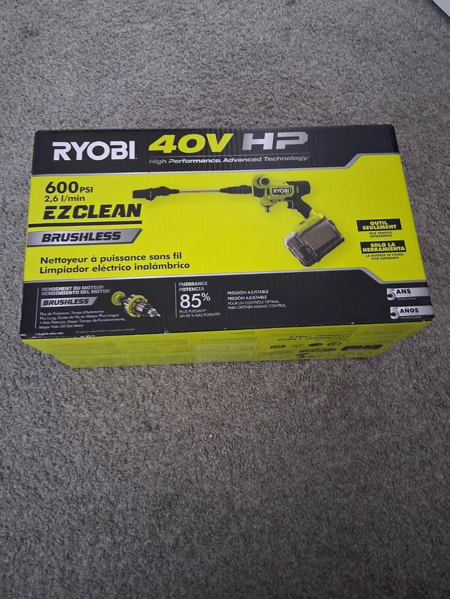 I'm selling a like-new Ryobi 40V HP EZClean Brushless Power Cleaner, a cordless and portable solution with 600 PSI for versatile cleaning. It's perfect for quick cleanups around the house or on the go. This unit is in excellent condition and ready to use. Key Features: * 600 PSI for effective cleaning * Brushless motor for longer life and runtime * Cordless design for portability * Part of the Ryobi 40V system. If you're reading this, yes, it's still available!