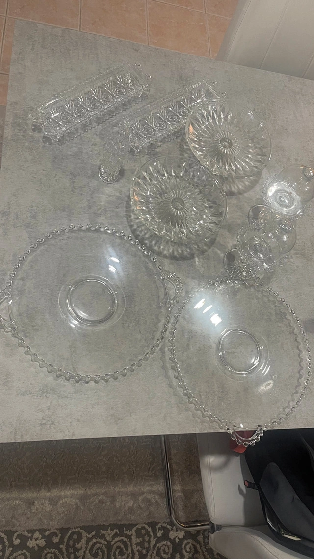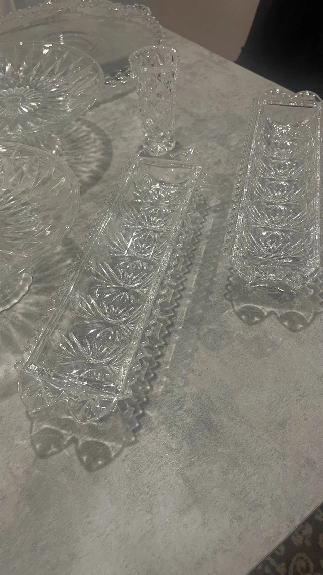 Elevate your dining experience with this exquisite collection of crystal glassware. This set includes a variety of pieces, perfect for adding a touch of elegance to any occasion. The items are used but in good condition, ready to adorn your table and impress your guests. This dazzling glassware is looking for a new home! Grab it before it disappears like morning mist. Remember, if the ad's up, it's still up for grabs!