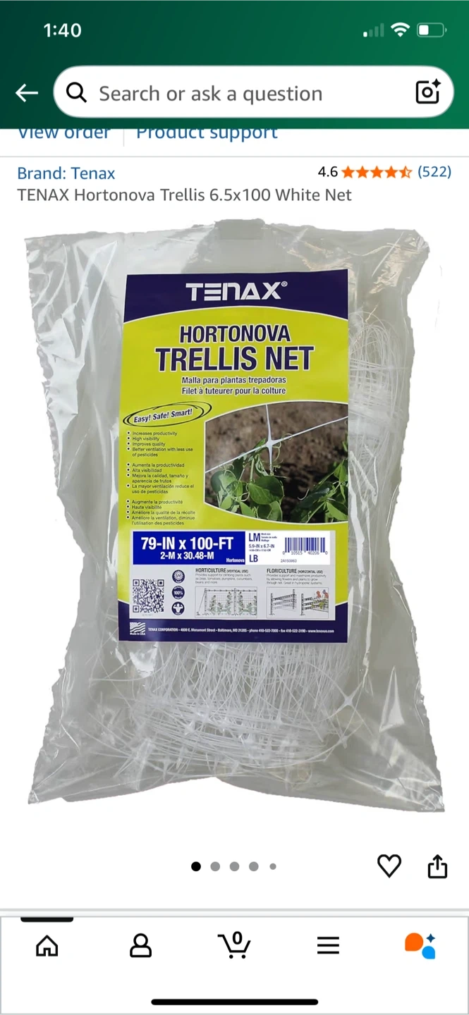 Selling a Tenax Hortonova Trellis Net, perfect for your garden! It's white and measures 79 inches by 100 feet (2 meters by 30.48 meters)