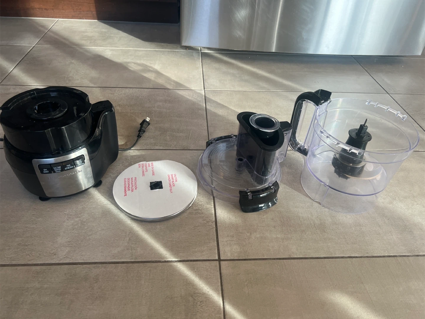 Hamilton Beach food processor with various attachments. It has settings for slicing, shredding, pureeing, and pulsing. Great for all your food prep needs!
