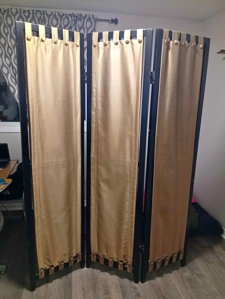 2 Used Room Dividers for $15 each. One of the dividers has a missing part on the hinges, but it can be fixed with a small nail. $50 for both dividers.