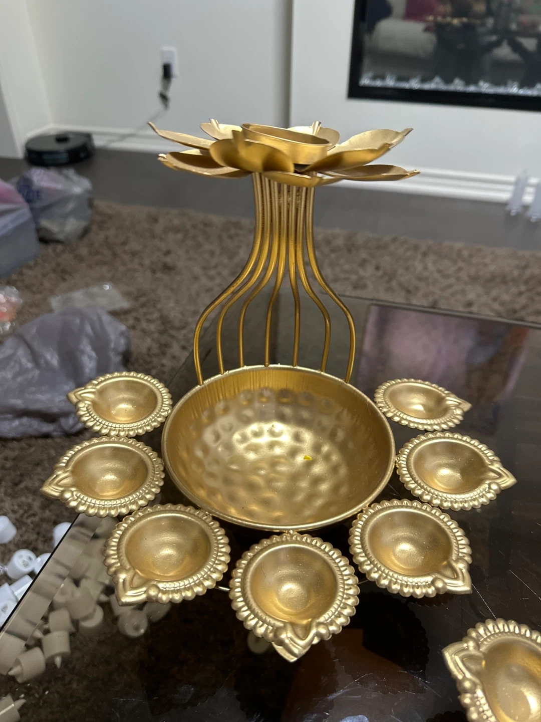 Selling a set of decorative candle holders, perfect for Diwali or any special occasion! These gold-toned holders add a touch of elegance to any space