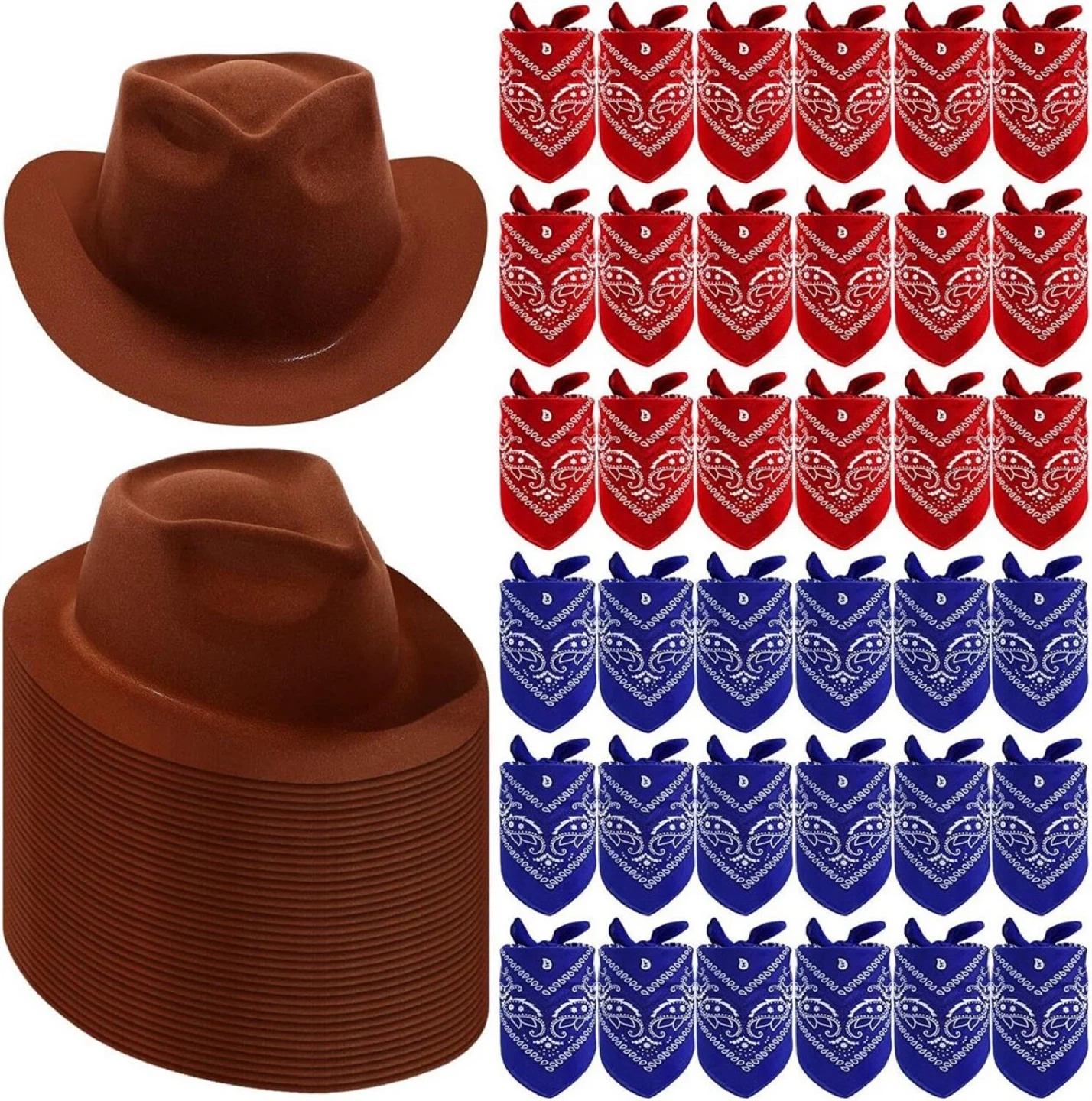 Hillban 72 Pack Cowboy Hat and Bandana Set, 36 Cowboy Hats 36 Cowboy Bandanas - Kids party supplies - theme