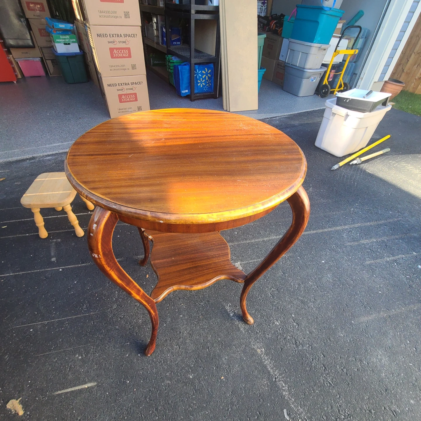 Selling a lovely round wooden side table! It's in great shape and would be a nice addition to any room. The tabletop is about 25 inches in diameter.