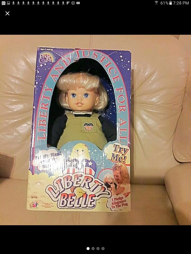 Buy & SellNew liberty Belle dollNew liberty Belle doll$28Great doll that can teach your child the pledge of allegiance.WHERE TO MEETCheck LocationView MapSELLER570258Valley Stream100 reviews0 chats·0 favorites·0 views