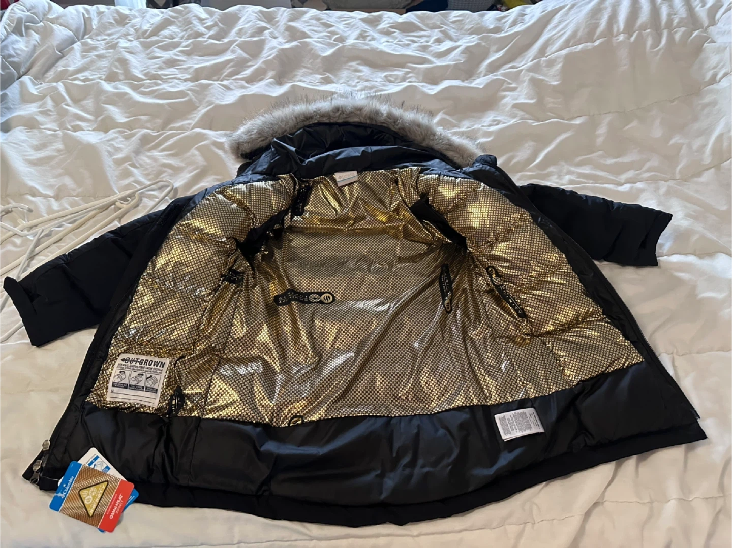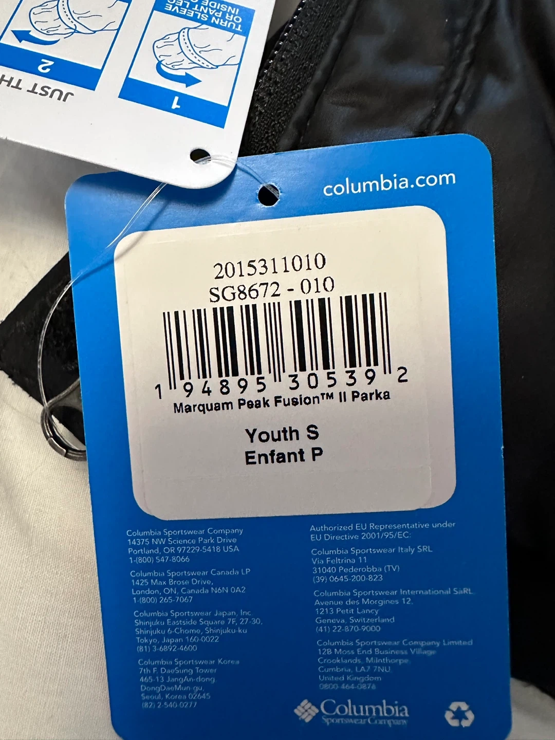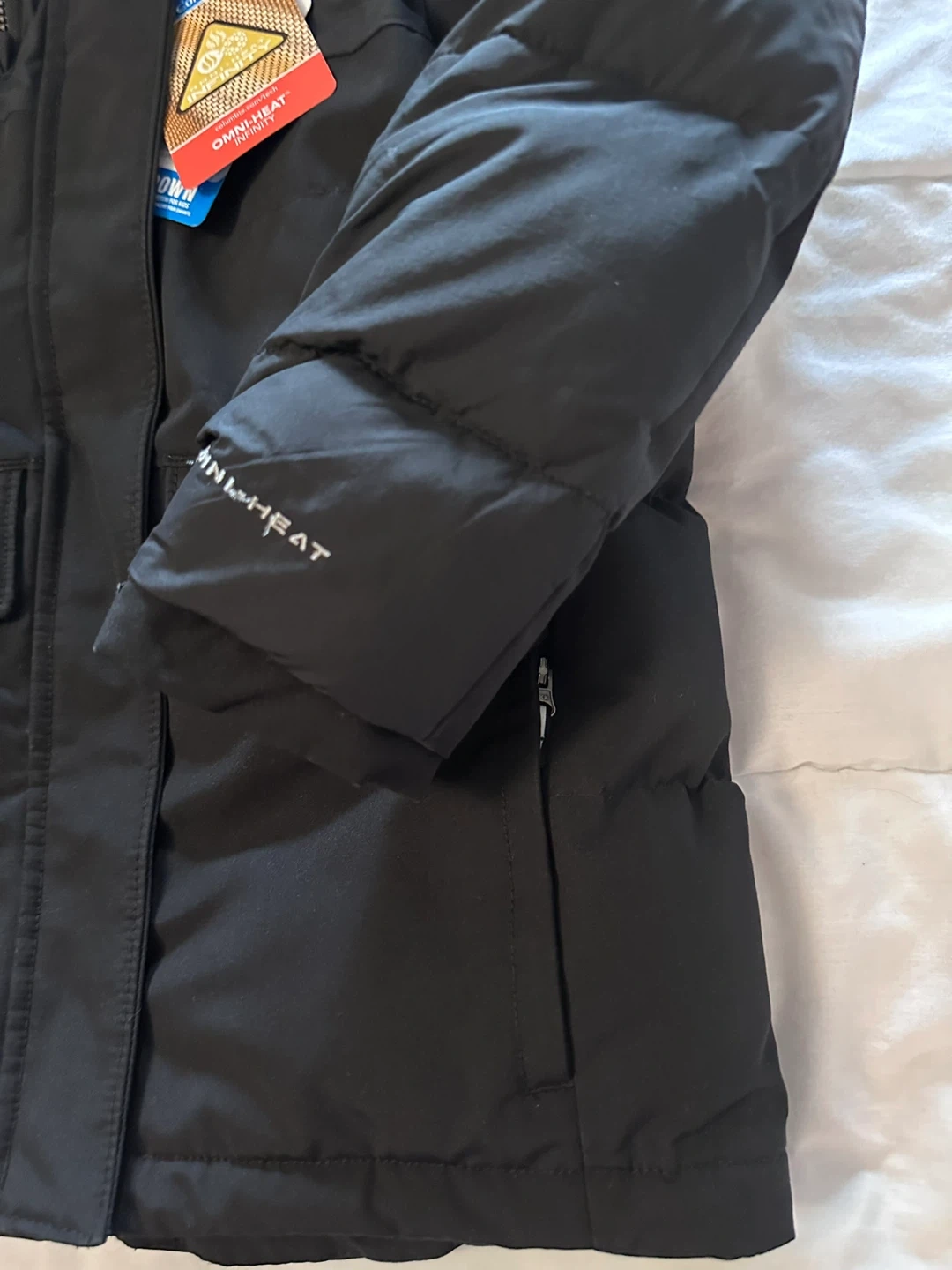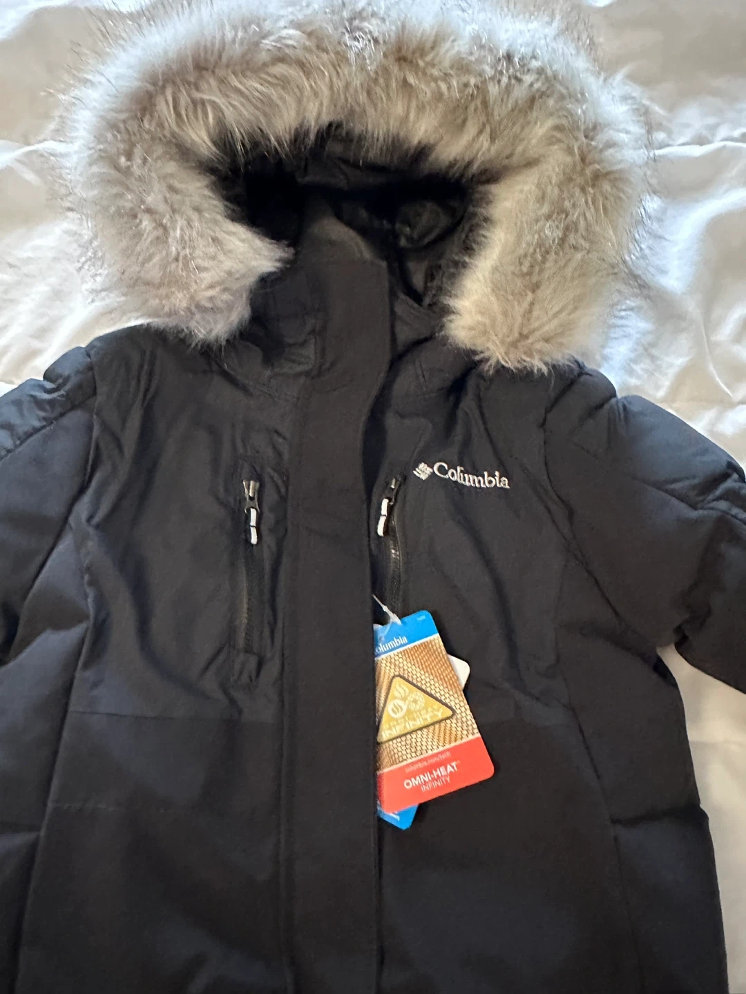 727Selling a brand new Columbia girls Marquam Peak Fusion II Parka in Youth Size Small (7/8). It's a stylish and warm jacket, perfect for the colder weather! The jacket is black with a fur-lined hood and features Columbia's Omni-Heat technology.