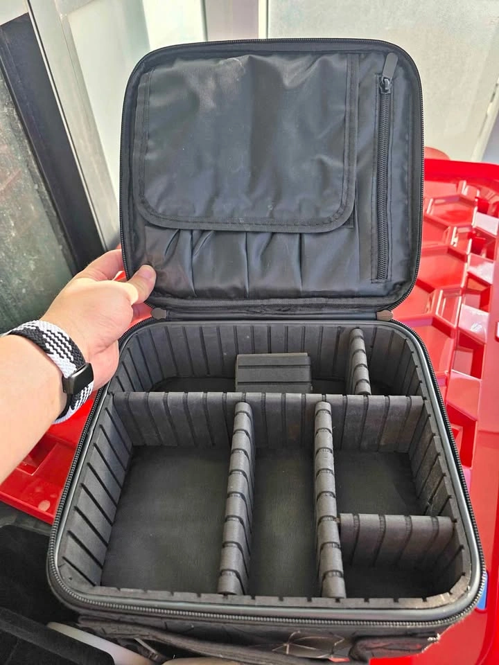 65π Versatile makeup organizer case with adjustable dividers. Perfect for cosmetics, skincare, jewelry, or travel storage. Hard shell design, water-resistant, and easy to clean. Gently used and in excellent condition.