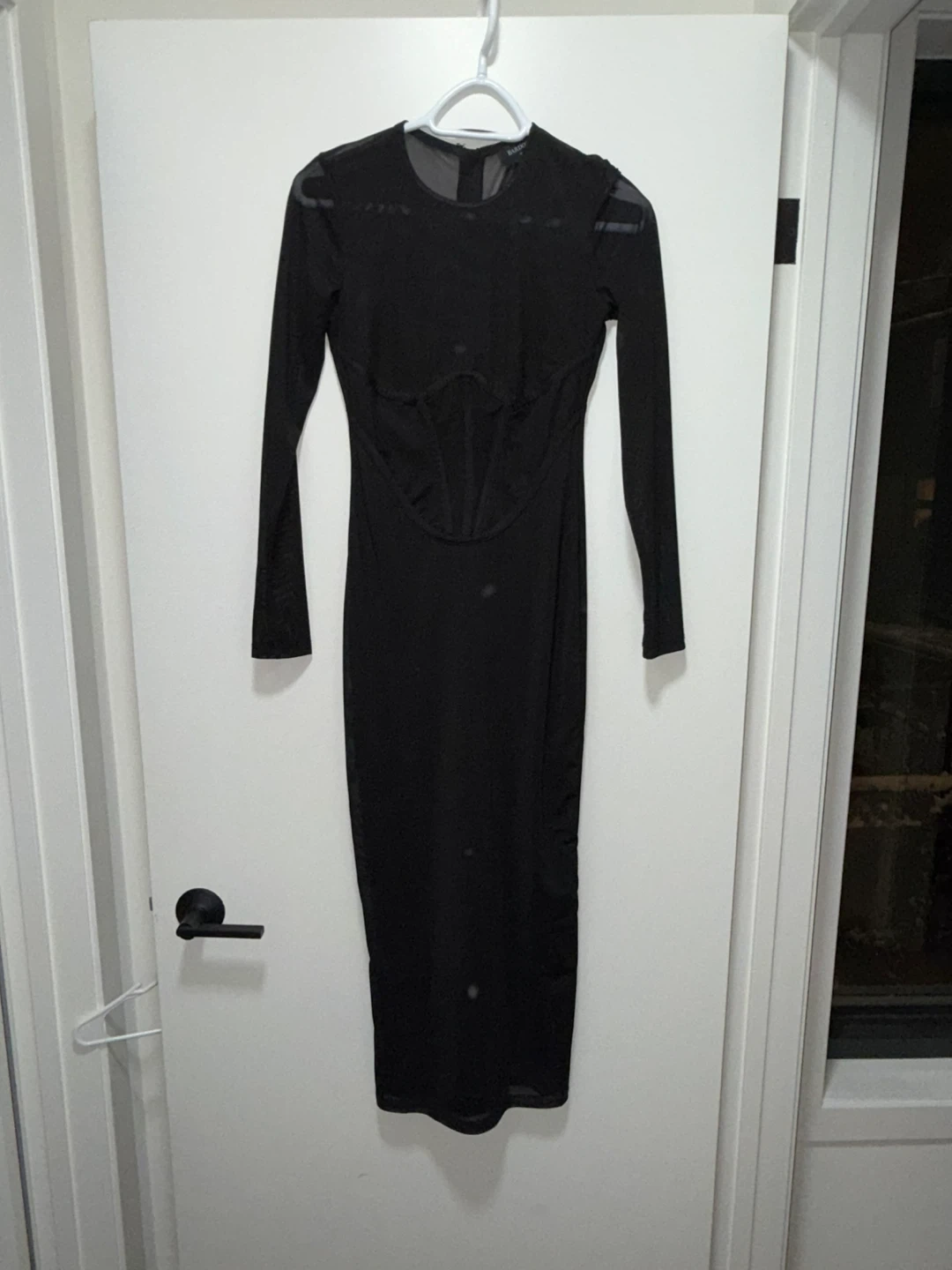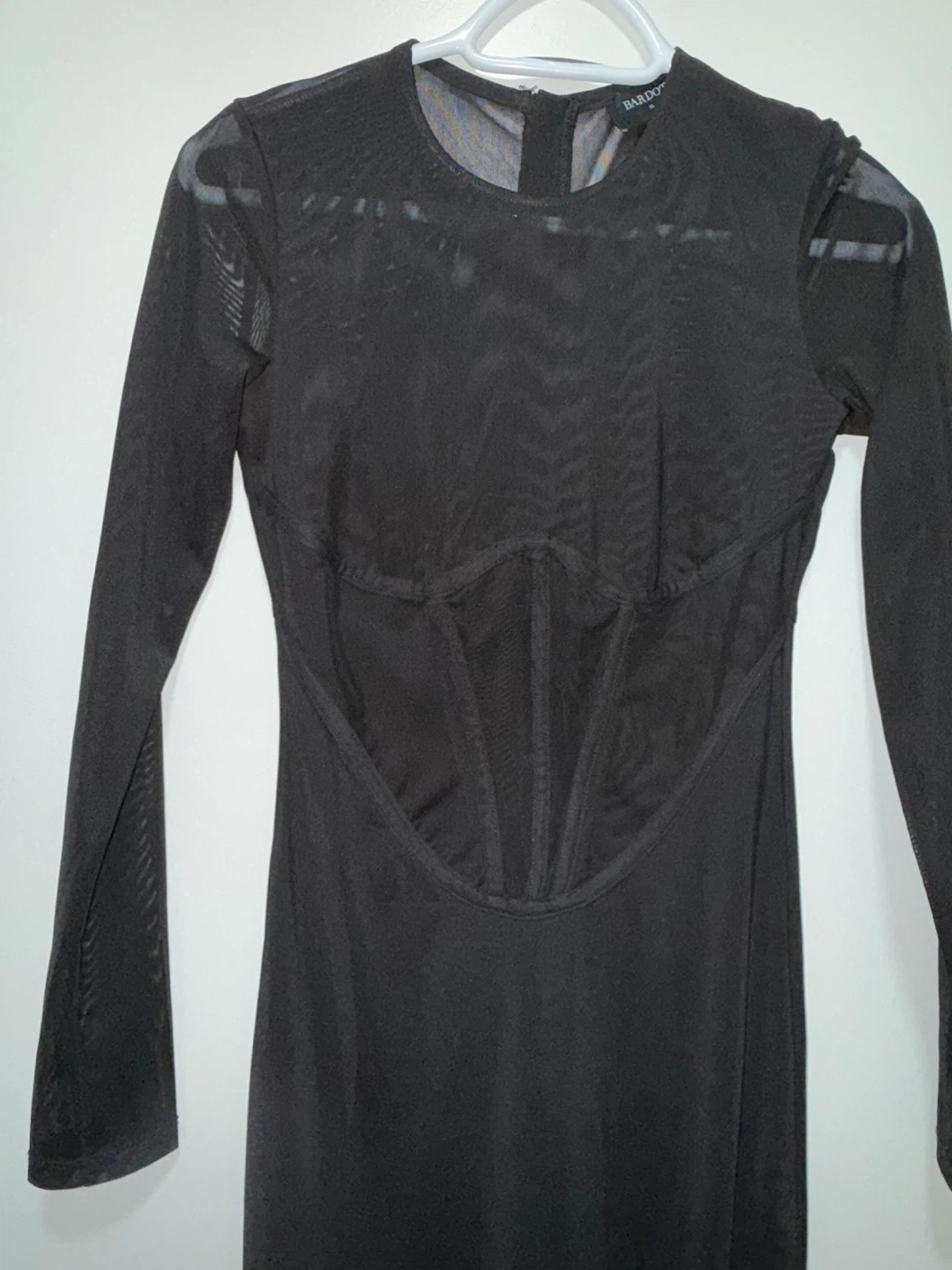 Selling a Bardot black midi dress! It features a corset style bodice and long sleeves. Perfect for a night out or special occasion! SIZE XS. Worn once. Retails for over $250 CAD (from revolve)