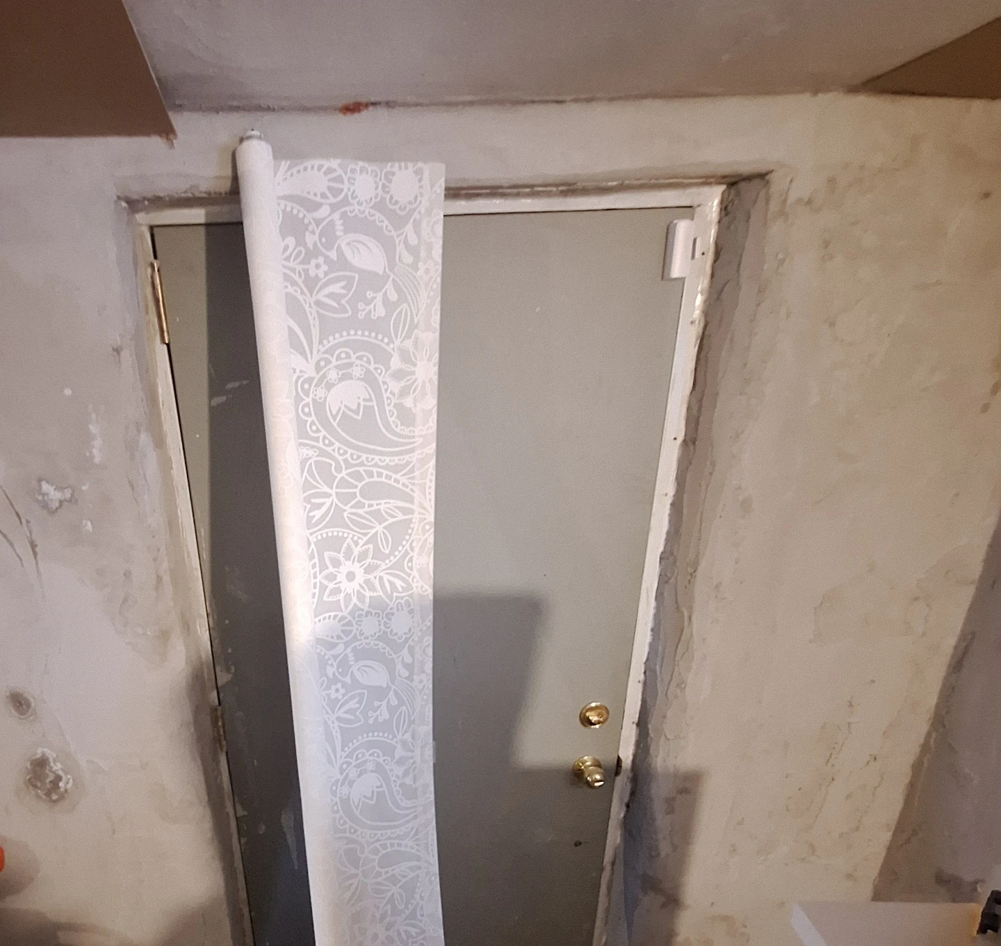 White Floral Patterned Window Drape Roll