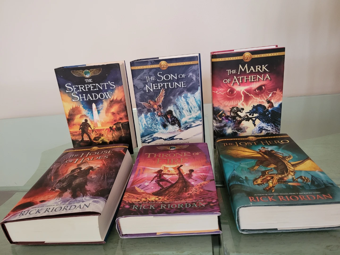 138Selling a set of Rick Riordan books! Included are: - The Heroes of Olympus series: The Lost Hero, The Son of Neptune, The Mark of Athena, The House of Hades - The Kane Chronicles series: The Throne of Fire, The Serpent's Shadow