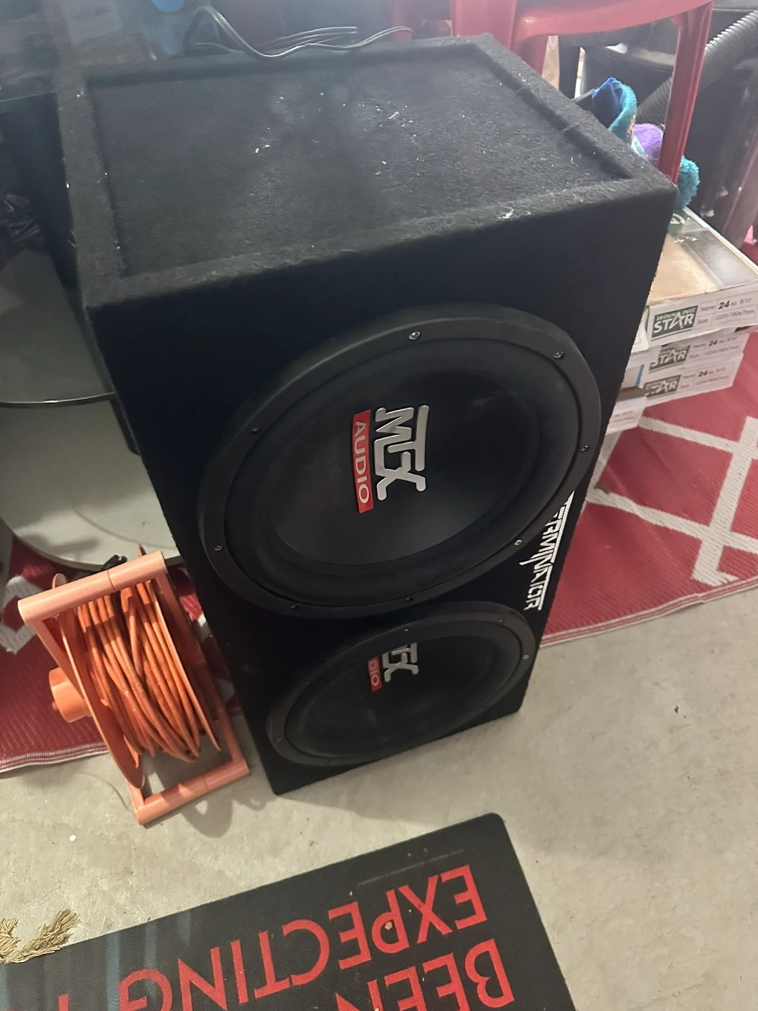 Selling a MTX Audio ThunderForm subwoofer box with two speakers and a Kicker CX1200.1 amplifier. Great for adding some serious bass to your car audio system!